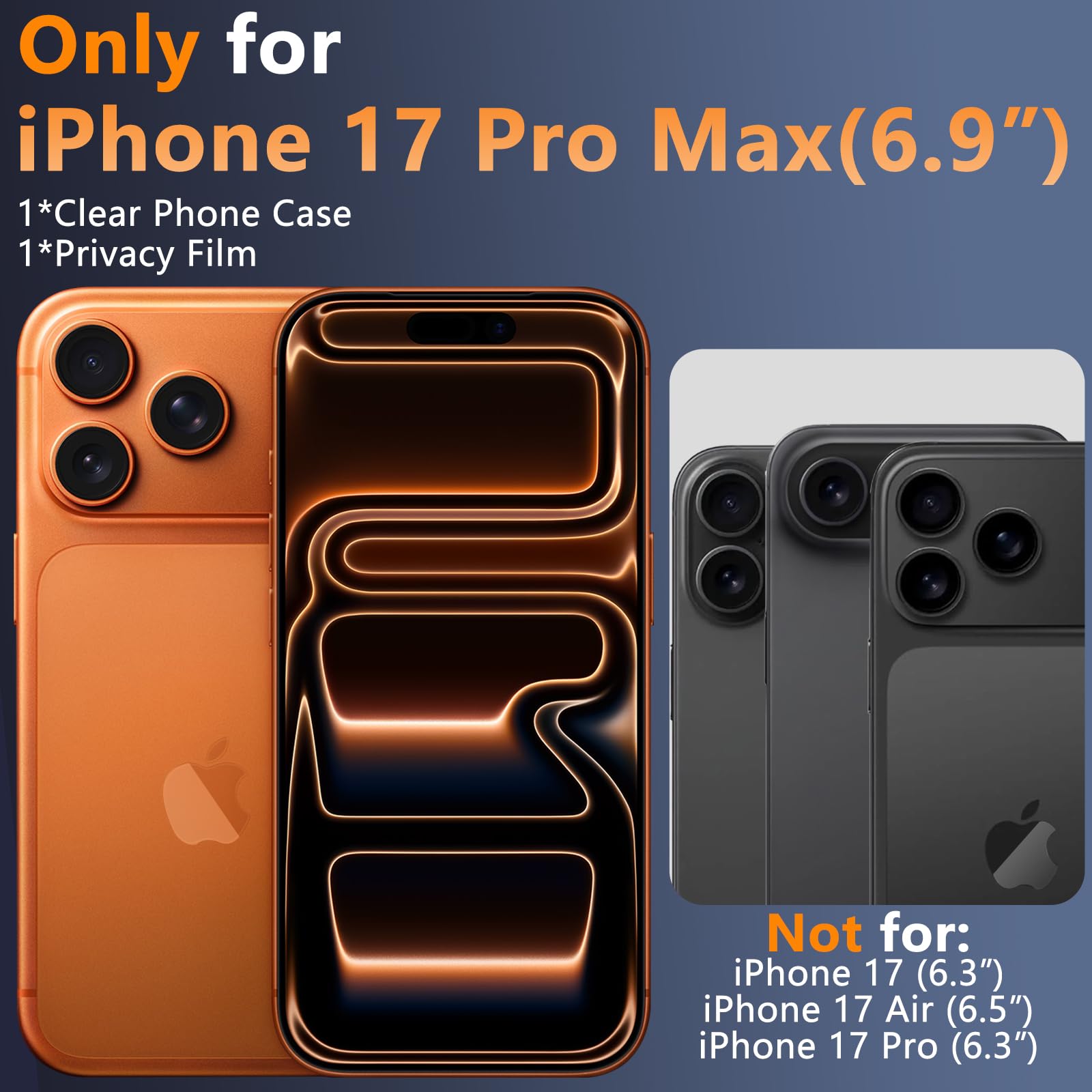 [Compatible Models&Professional Customer Support] This phone case only for iPhone 17 Pro Max(6.9 inch), with 1PC privacy screen protector for iPhone 17 Pro Max,not applicable to any other models, Please confirm that your phone model before purchase, We have good customer service,if your have any questions, Please contact us through Amazon and we will help you within 24 hours.