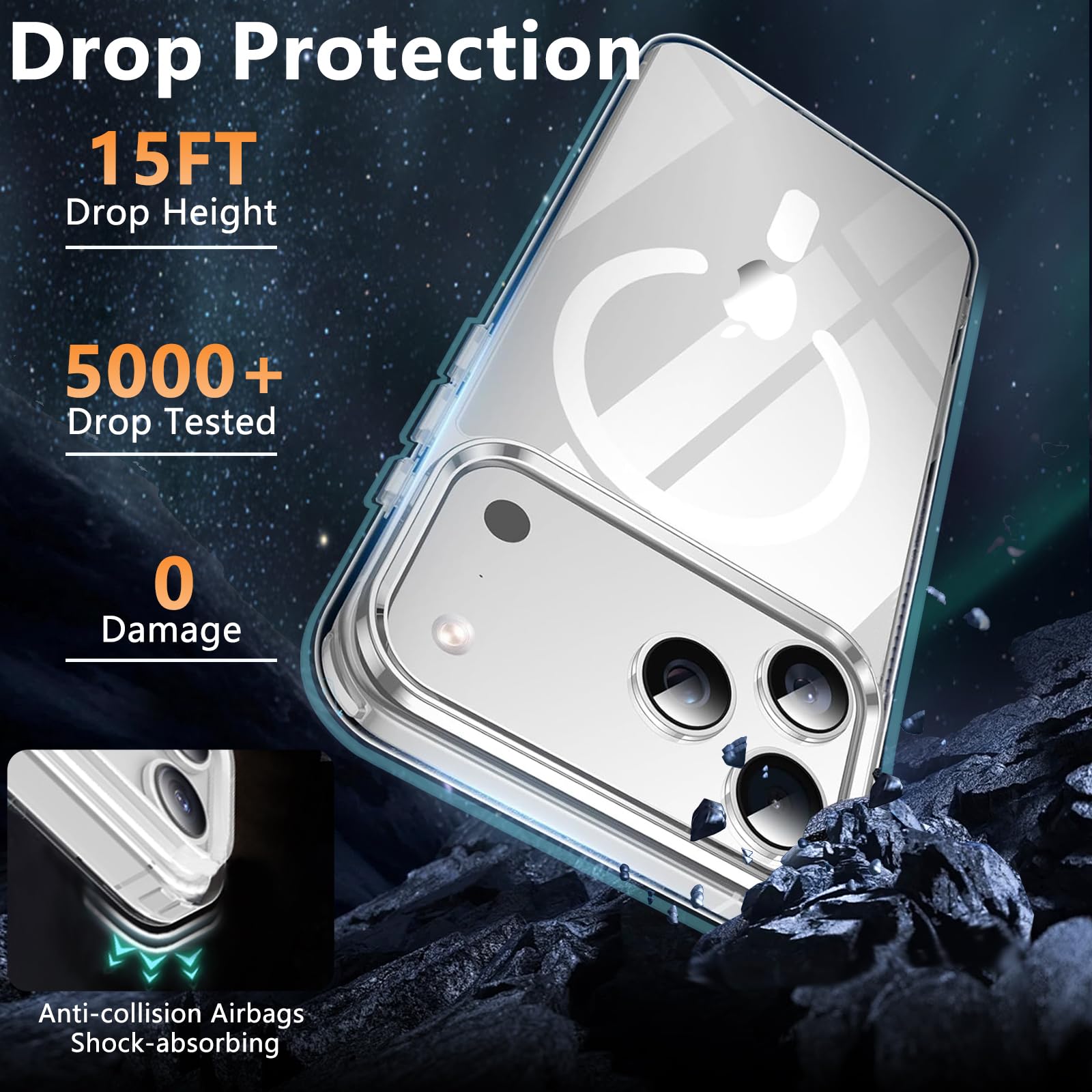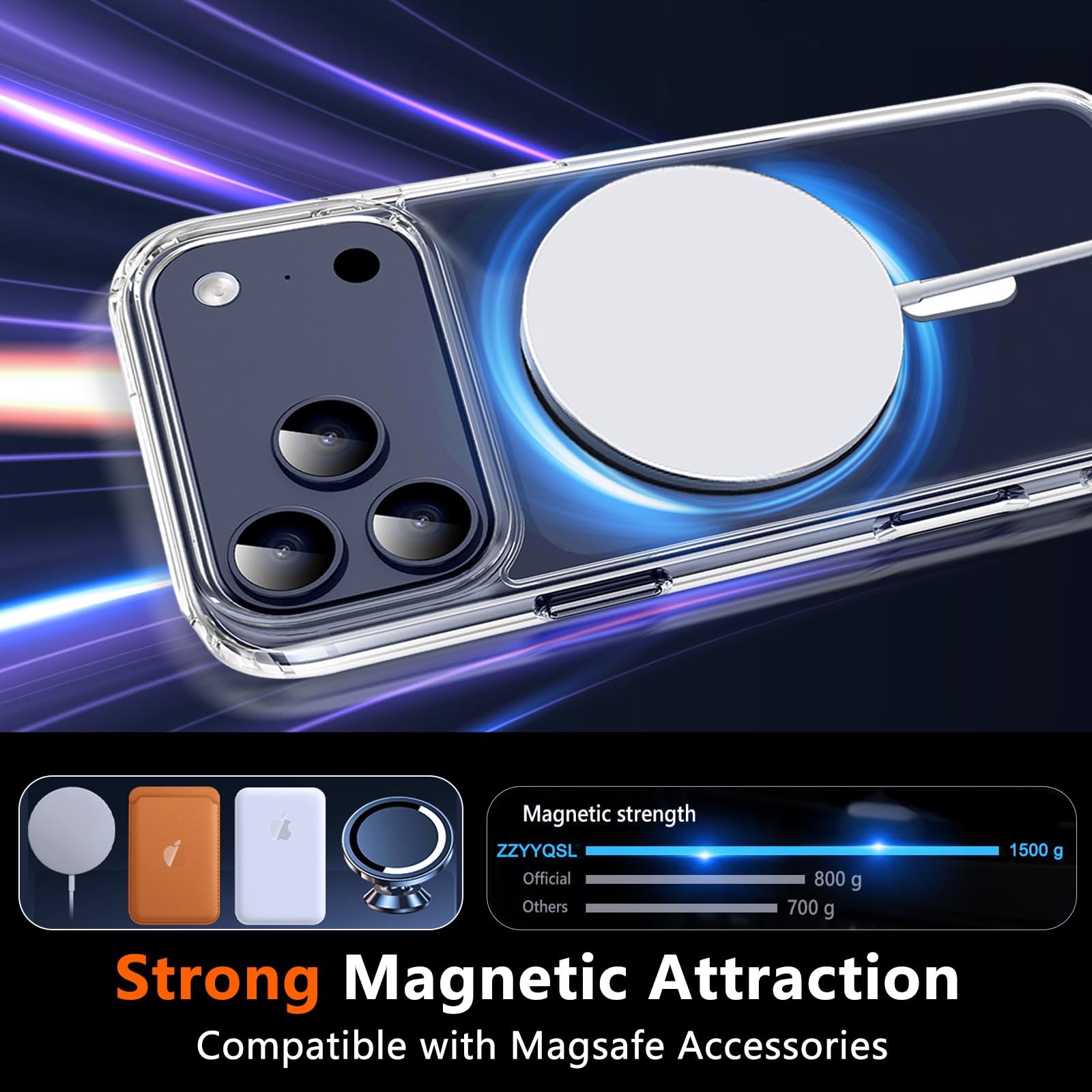 [Compatible with MagSafe] This for iPhone 17 Pro Max clear case compatible with MagSafe accessories, has built-in 38 super N52 magnets, has strong magnetic attraction Compatible for Magnetic chargers and other magnetic accessories.