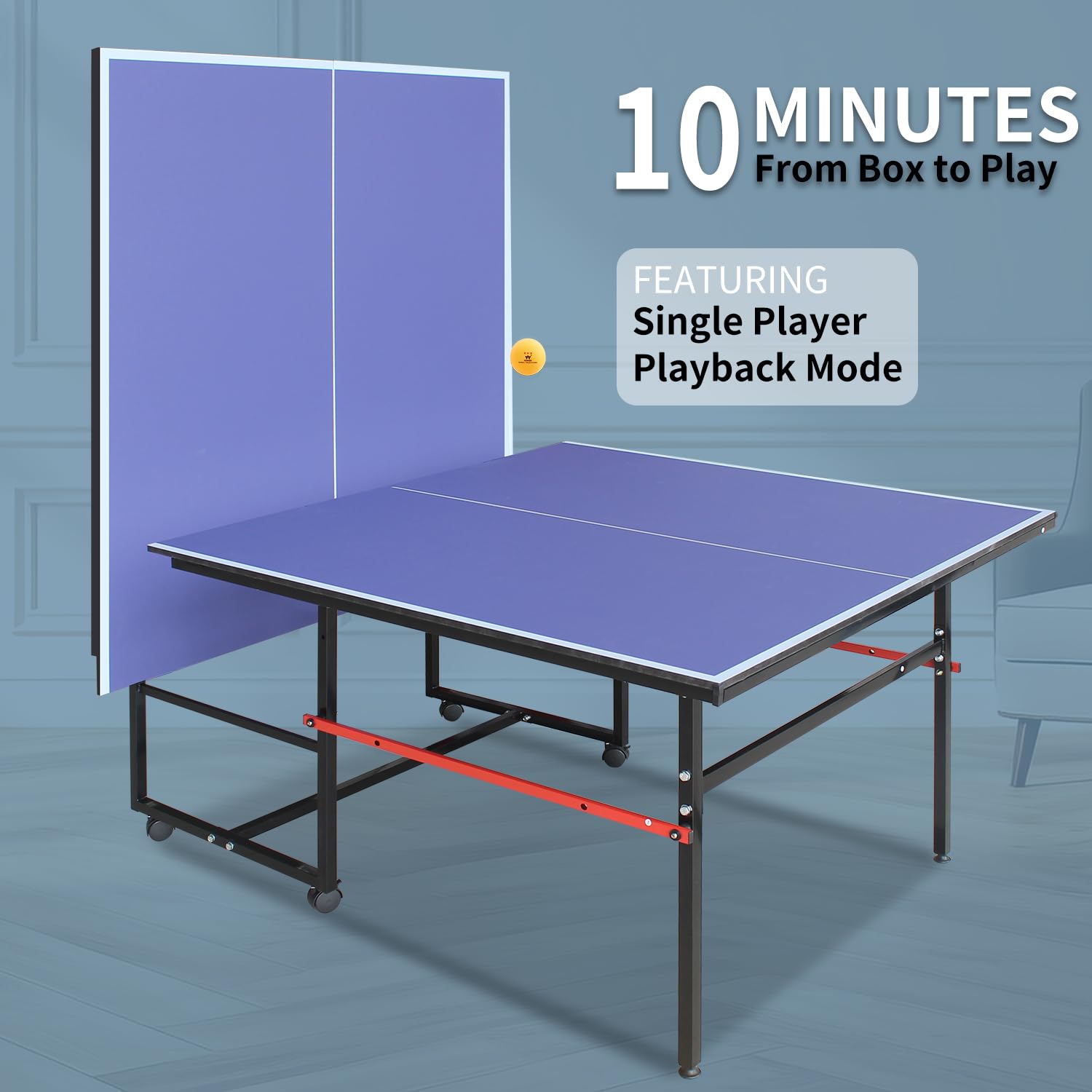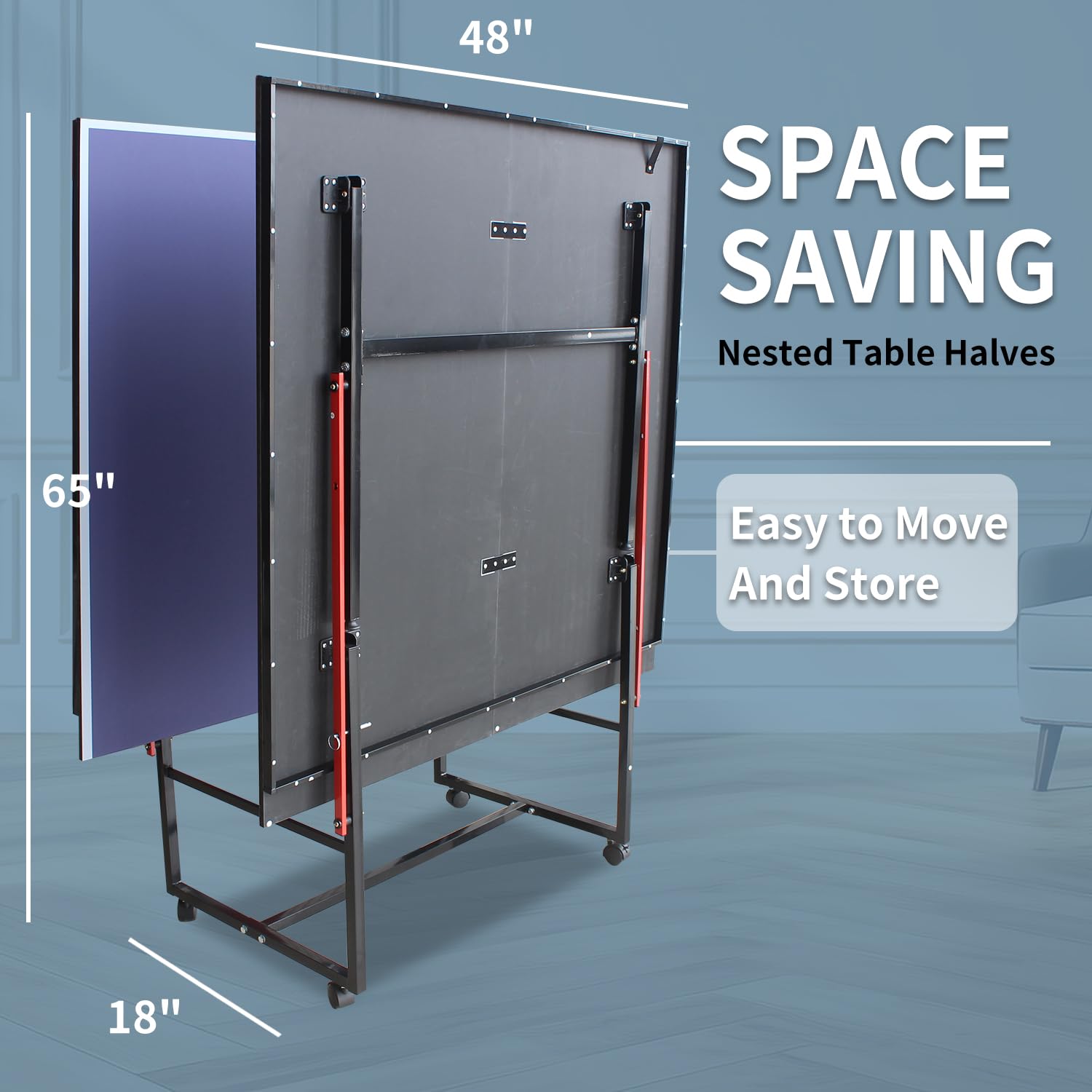 【Foldable Space-Saving Design】Easily fold the ping pong table when not in use, saving space and making storage a breeze. With smooth-rolling wheels, you can quickly move and set it up wherever needed.