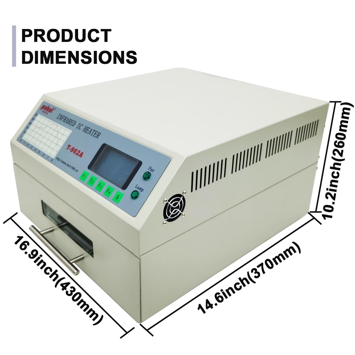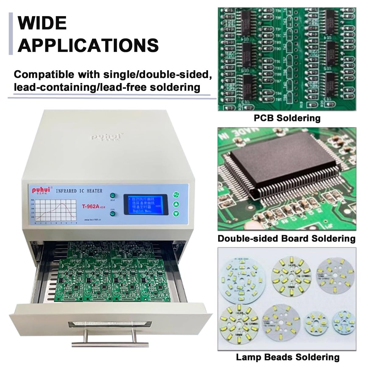 High-Capacity Processing: Features a large 300x320mm (11.8"x12.6") infrared heating zone with forced-air convection, enabling uniform temperature distribution (±2°C) for lead-free (max 280°C) and standard soldering applications
