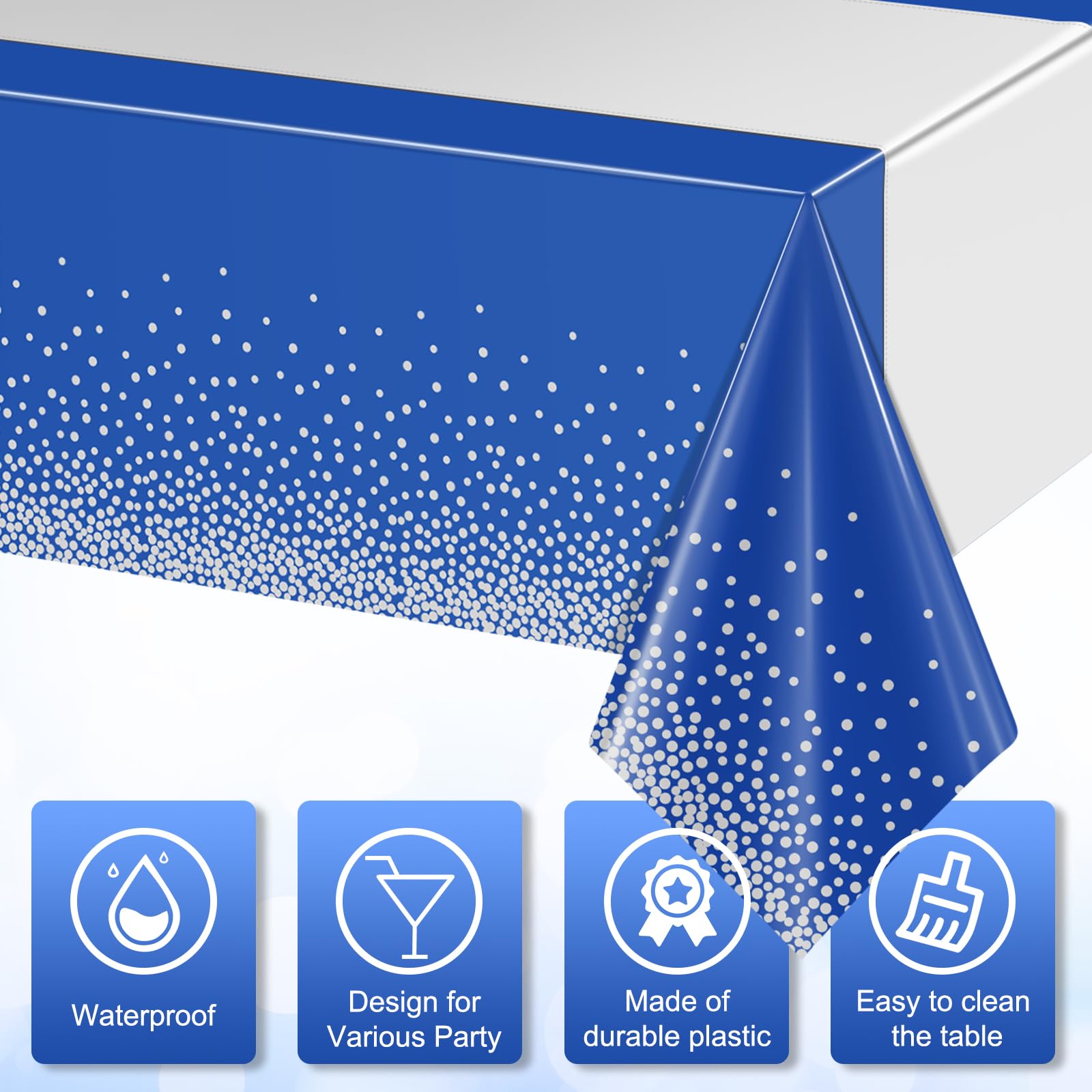 Safe and waterproof: these disposable blue silver tablecloths are made of quality thick plastic material, which is non-toxic and safe for kids and adults; Meanwhile, the tablecloths are lightweight , waterproof ,spill-proof stain resistant, they can effectively keep your tables clean, and can protect your tables from scratches