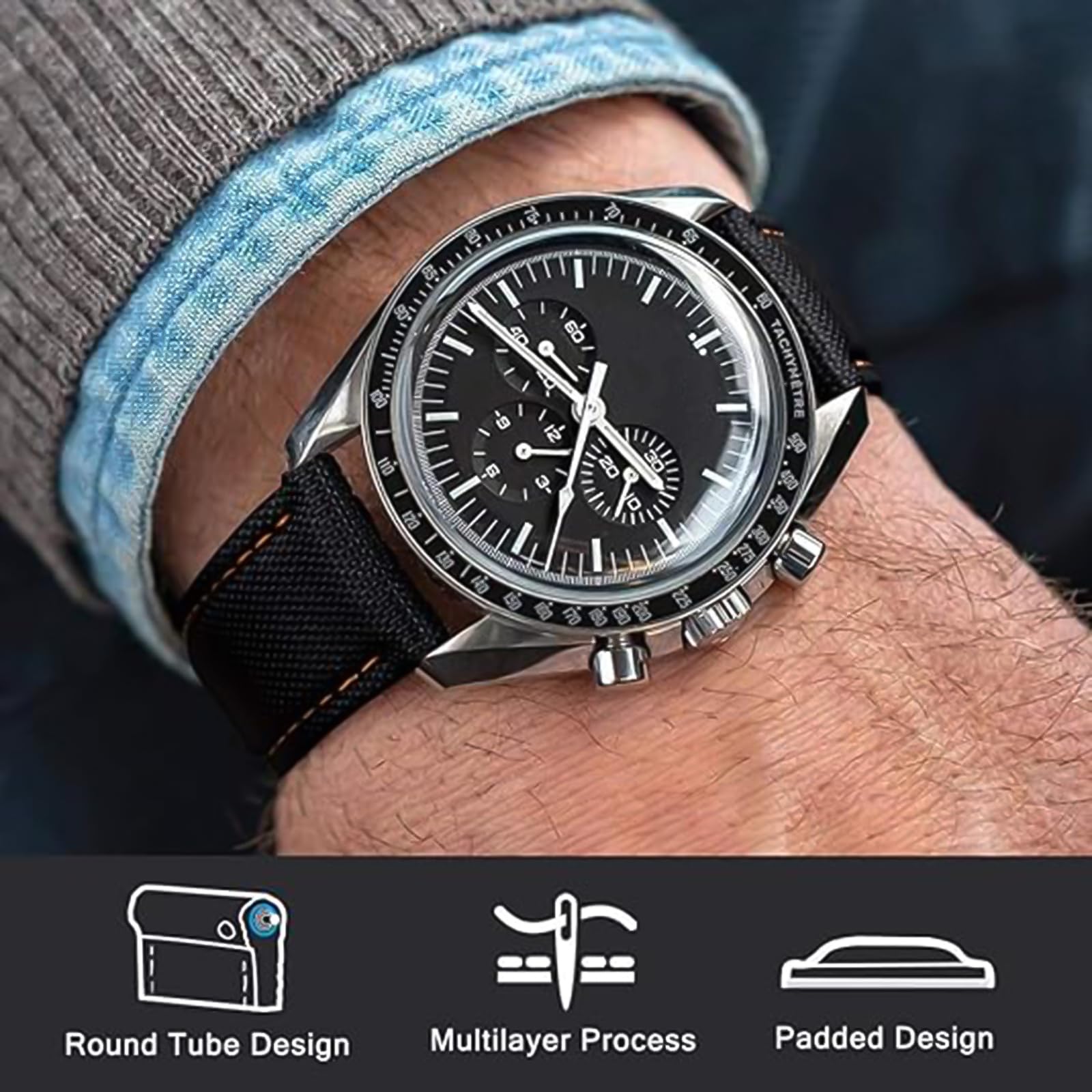 Premium Materials: Ritche sailcloth watch straps adapts premium nylon weave sailcloth. It is soft breathable and durable. The bottom of this watch band adapts reinforced matte lining and against the skin and minimizes slipping while providing ideal comfort. The buckle part of this sailcloth watch strap is brushed, which adds a sense of fashion to the strap.