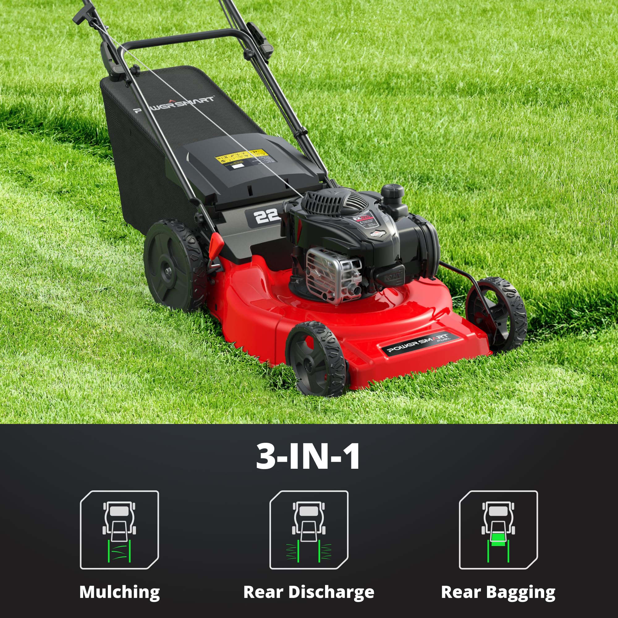 3-In-1: Mulching, rear-discharging or bagging options for you choose, and the 1.4-bushel capacity grass mower bag is easy to empty, saving you time and effort.