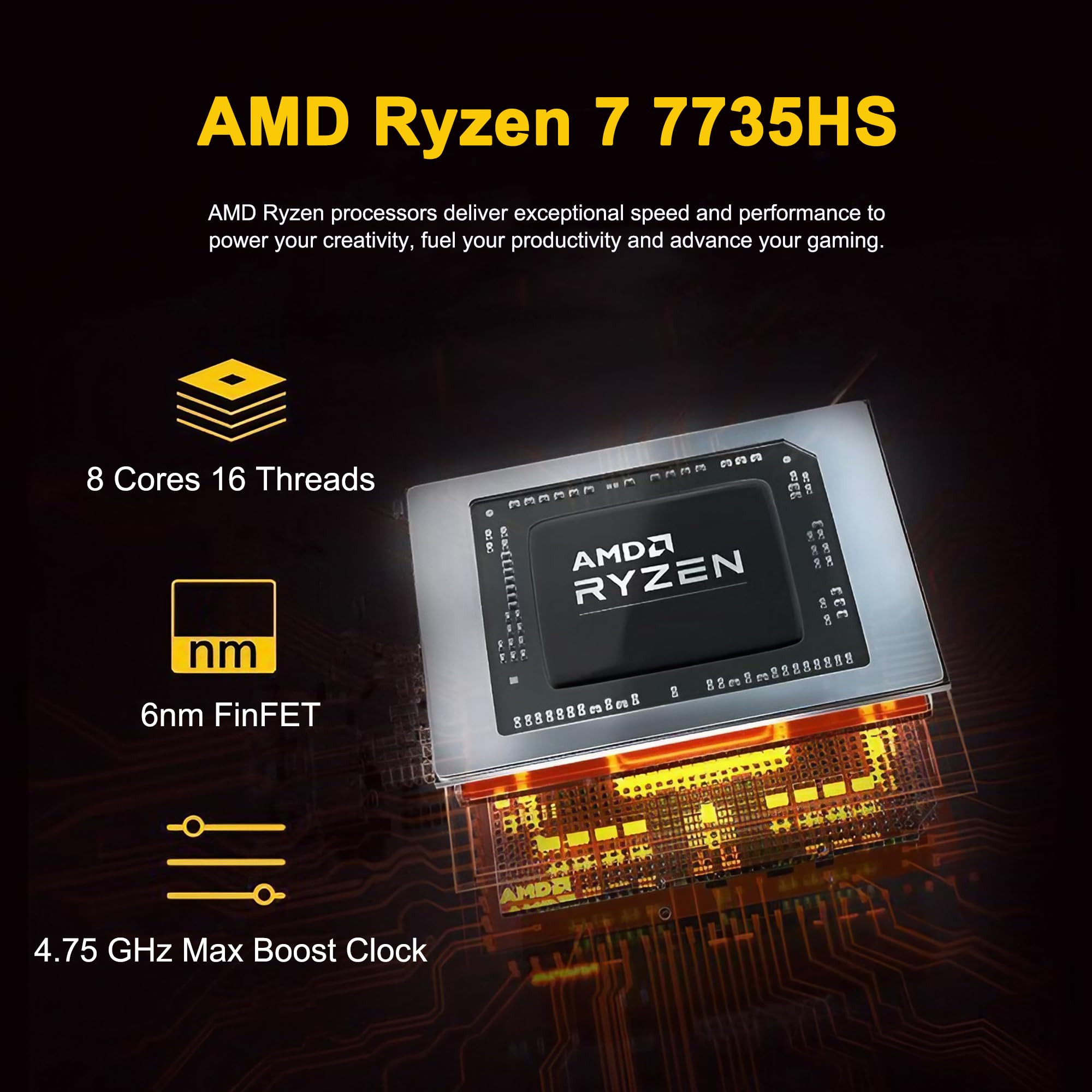 Advanced AMD Performance: Harness the power of the AMD Ryzen 7 7735HS processor, featuring 8 cores, 16 threads, and boost speeds up to 4.75GHz. With 16MB of L3 Cache, it delivers seamless responsiveness for intensive multi-tasking and creative workflows.