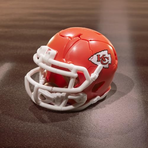 OFFICIALLY LICENSED NFL TRANSFORMERS BOT: This Transformers figure, KC-59, represents the Kansas City Chiefs and features team colors, a mini helmet and a football accessory.