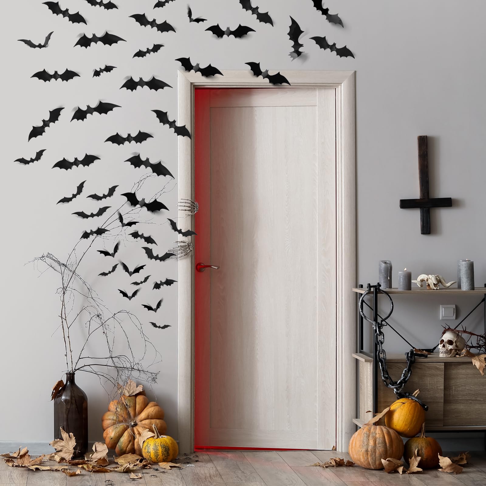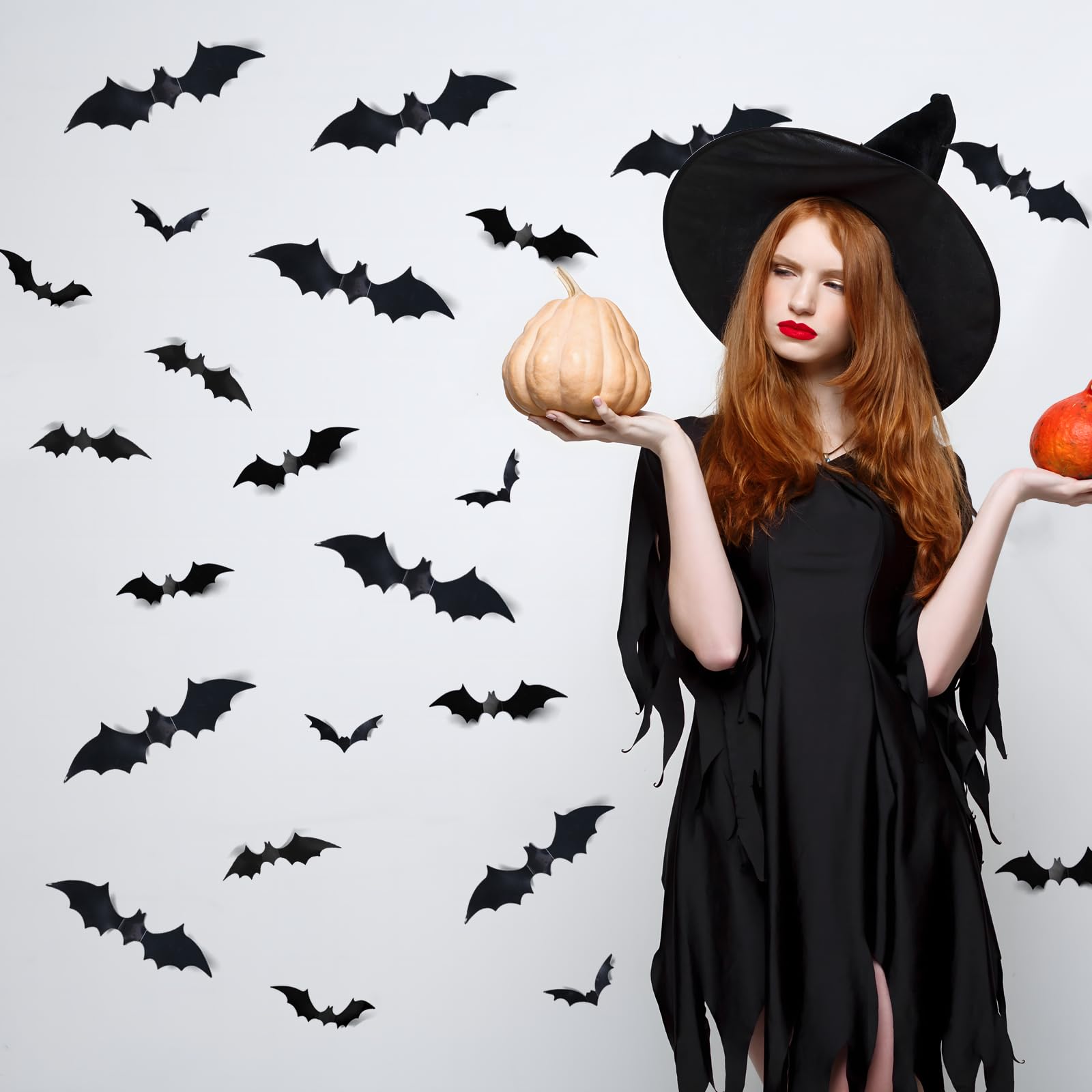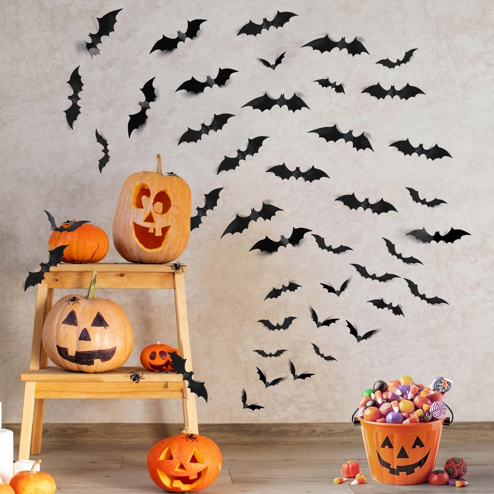 3D HALLOWEEN BATS: Fold the bat wings to create a 3D flying effect. These 3D wall bats will make your space look like it's filled with real, flying bats. Perfect for Halloween party decorations, school carnivals, and Bat guy-themed parties.