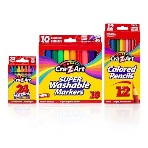 Cra-Z-Art Classic School Supply Bundle features 46 Pieces - 10ct Broadline Markers, 12ct Colored Pencils and 24ct Crayons
