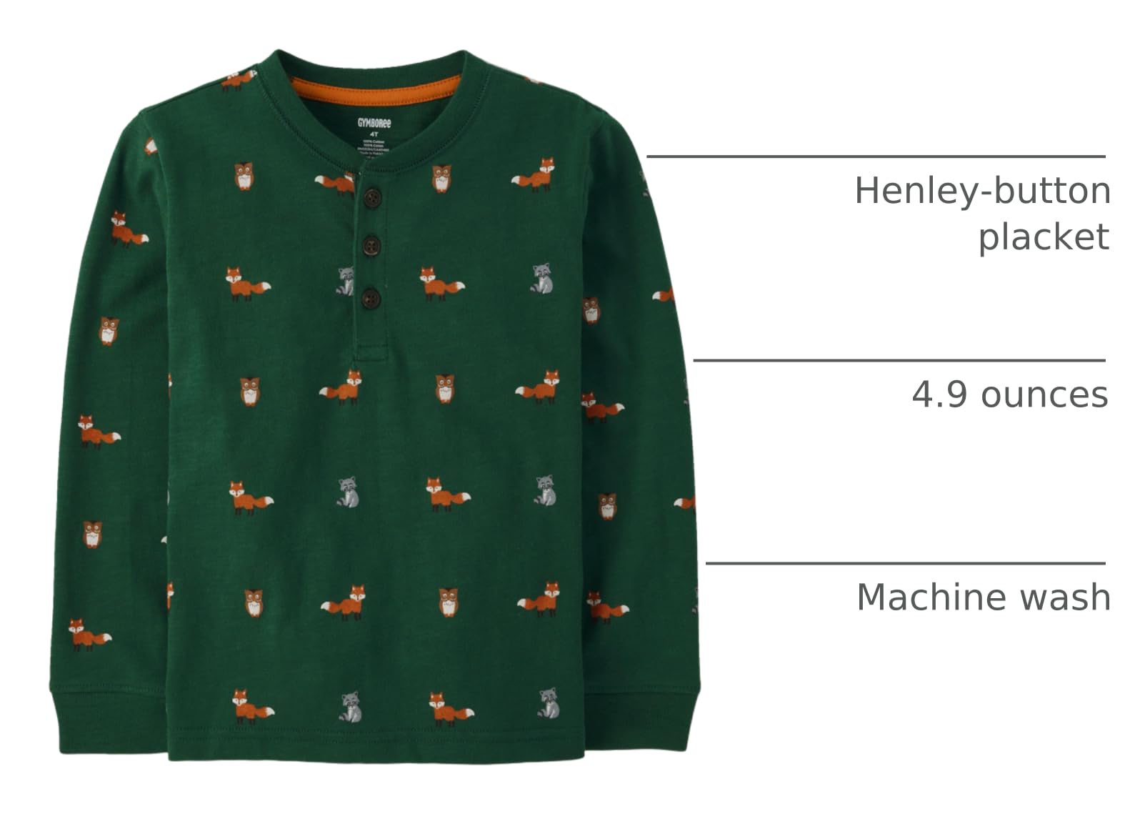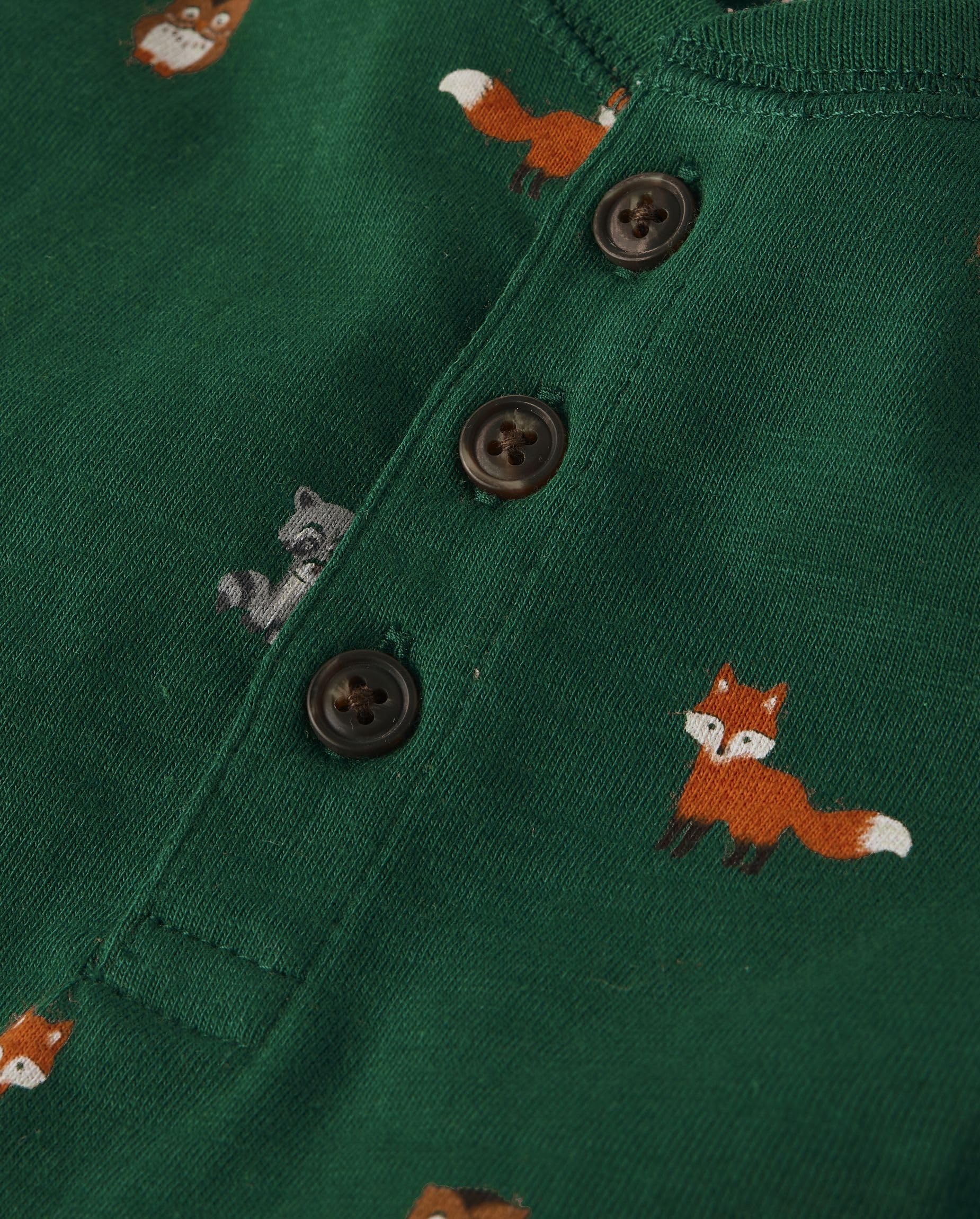 FEATURES: Henley-button placket, fox print