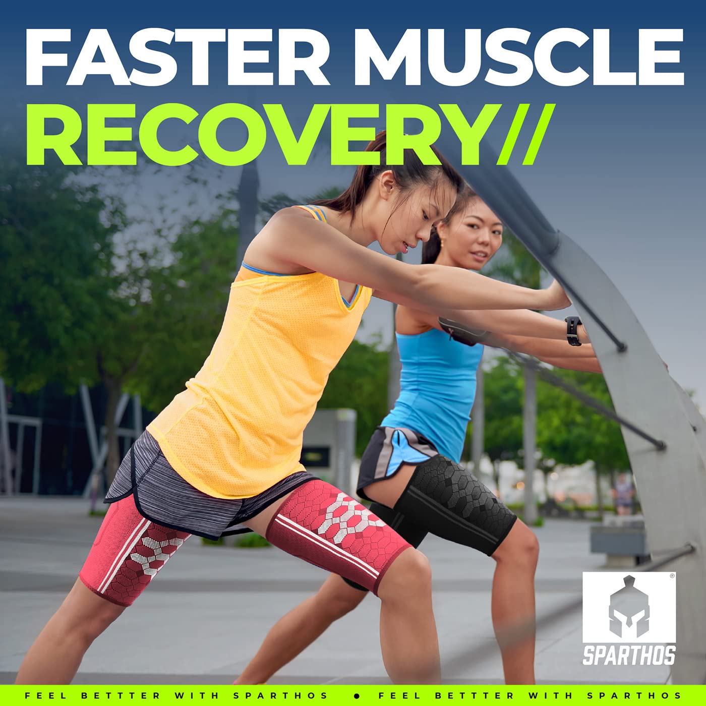 ✅ PAIN RELIEF AND FAST RECOVERY - Recommended by trainers and doctors, Sparthos thigh sleeves will provide relief from injuries around the thigh, hamstrings, quadriceps, and groin areas. Get through your day without pain and discomfort.