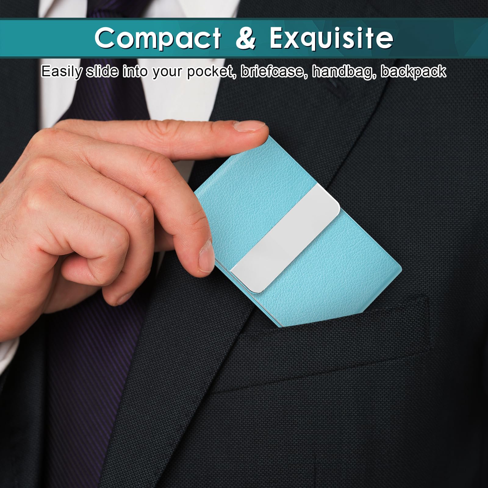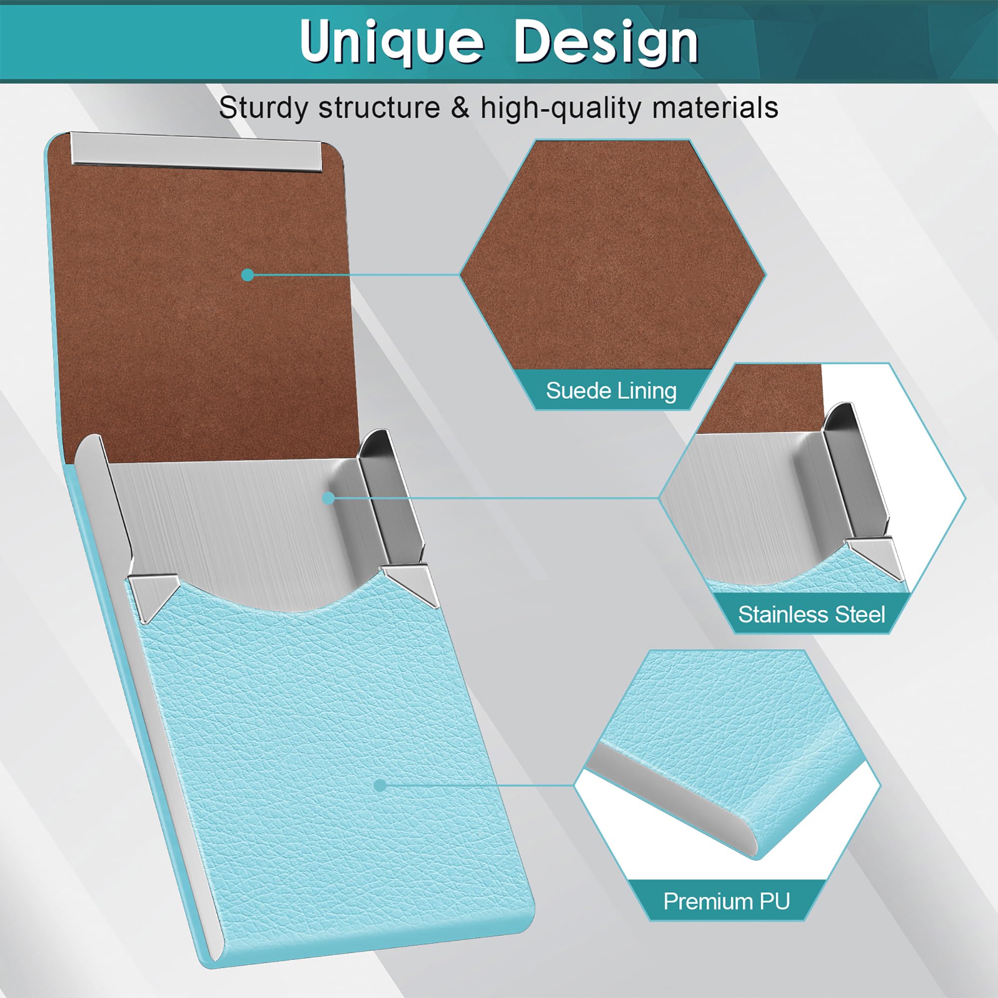 Material: Our business card holder made of luxury PU leather and high quality Stainless Steel. It has a good solid construction, use longer.