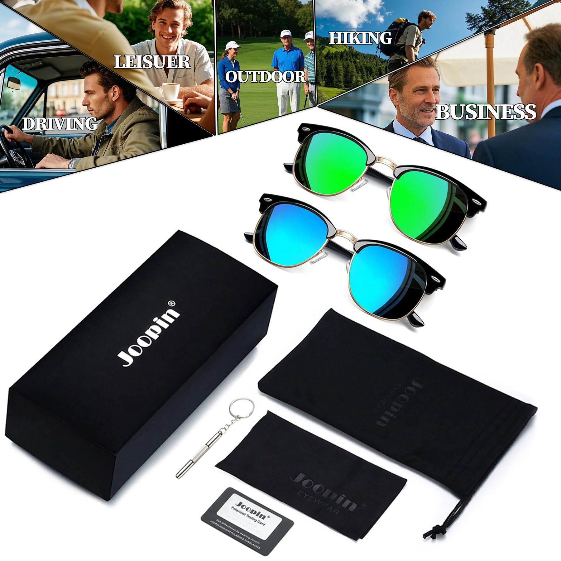 Exquisite Box Packaging:Green mirrored sunglasses x 1 / blue mirrored sunglasses / soft box x 1 / exquisite bag x 1 /lens cloth x 1/ practical screwdriver x 1/polarized testing card x 1. Step out in style with these designer sunglasses. packaged already, making it a wonderful yet practical festival idea for friends and family! Joopin focuses on fashion womens sunglasses and mens sunglasses. Click and get your quality and cheap sunglasses now