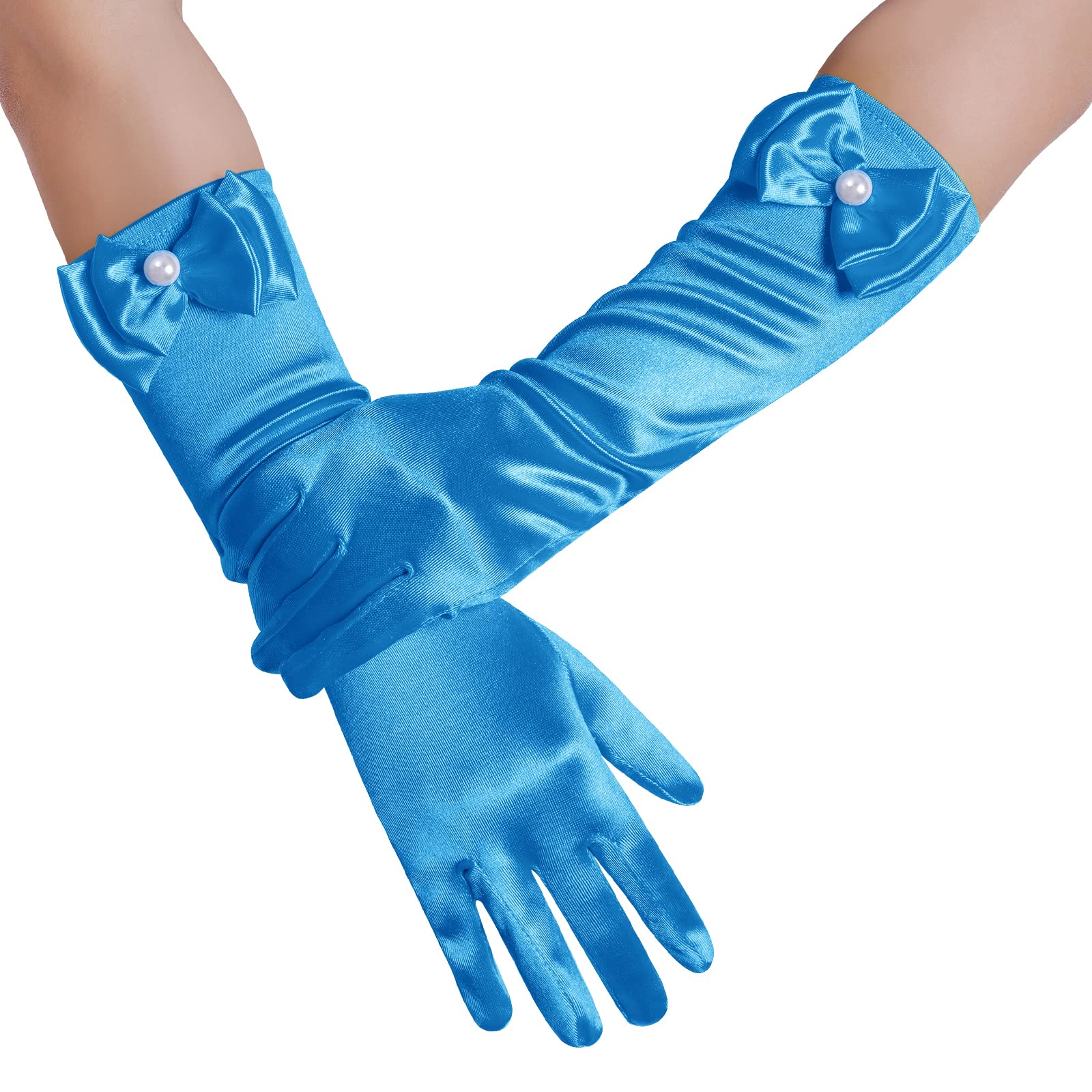 Description Features: Stretchy bow-knot girls' gloves fit children age 4 years up to 8 years old. The quality fabric is stretchable to fit a variety of sizes Easy to clean and maintain Lovely and classic gloves is a great girls accessories Suitable for little girls in Parties, Wedding, Formals Events, Performance or Costumes Package Included: 1 pair of girls gloves