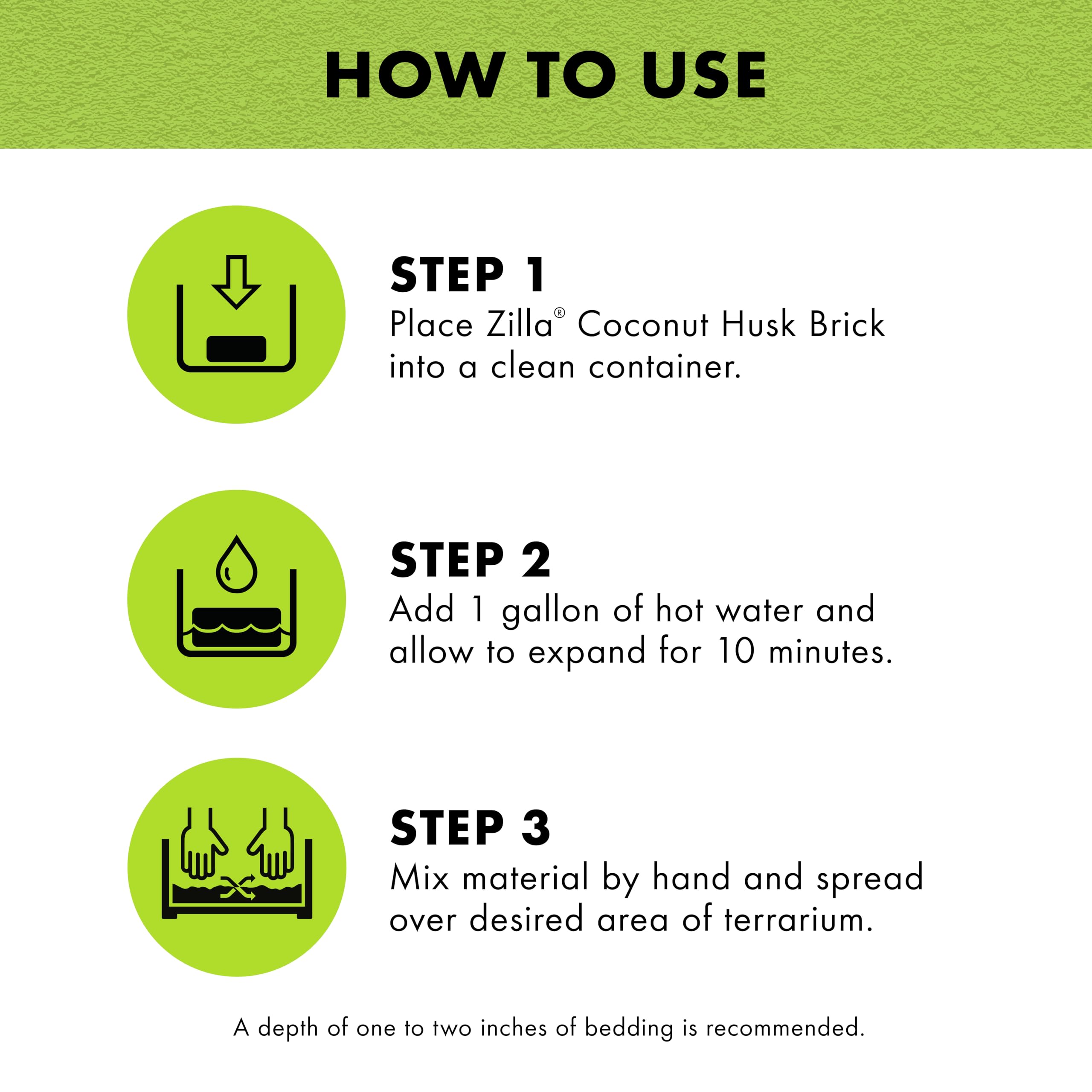 COVERS THE BOTTOM OF A 55-GALLON ENCLOSURE by expanding up to 5 times the size of the compressed brick when hot water is added.