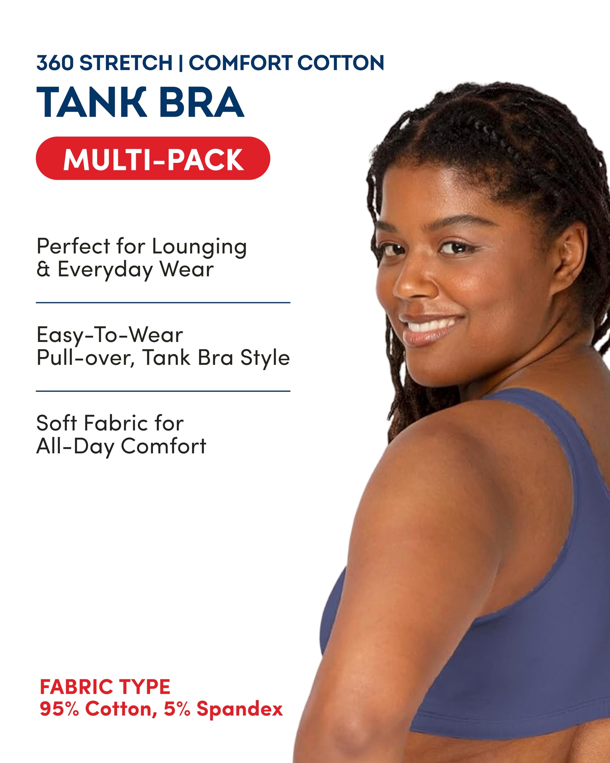 Lightweight and Comfortable: The Fruit of the Loom Women's Tank Style Cotton Sports Bras cotton pullover sports bras perfect for leisure or for the gym.