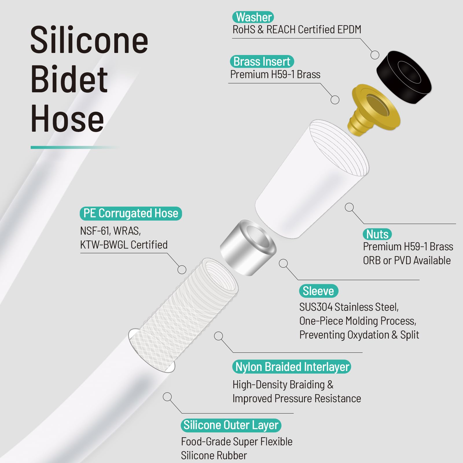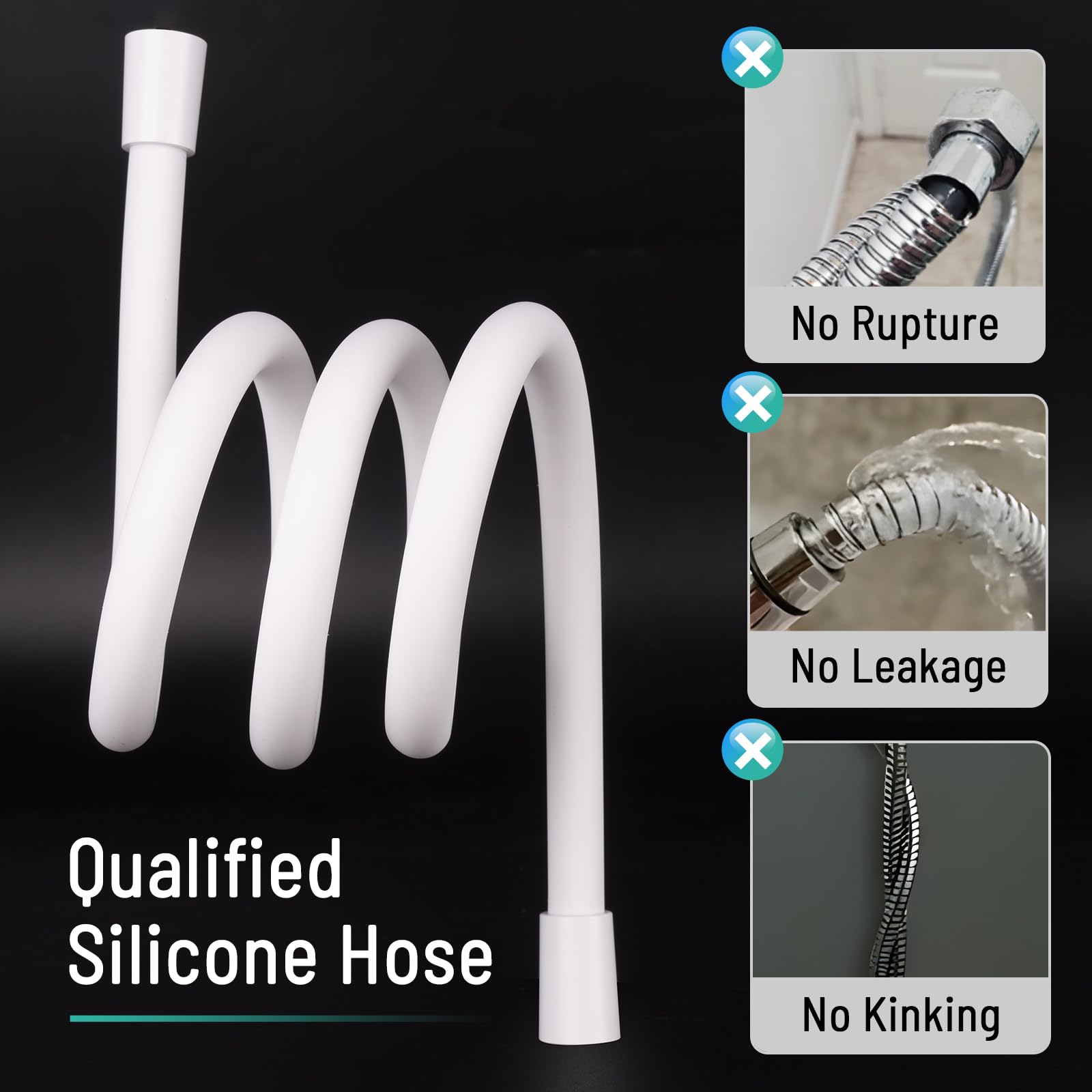 Explosion Proof: Silicone bidet hose is NSF certified, guaranteeing safety and quality standards. Crafted from food-grade silicone, our handheld shower hose is not prone to scale and offer exceptional softness, flexibility, durability.