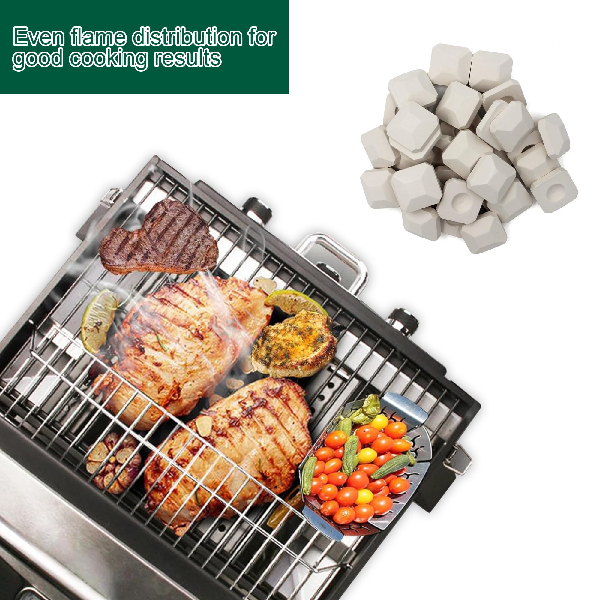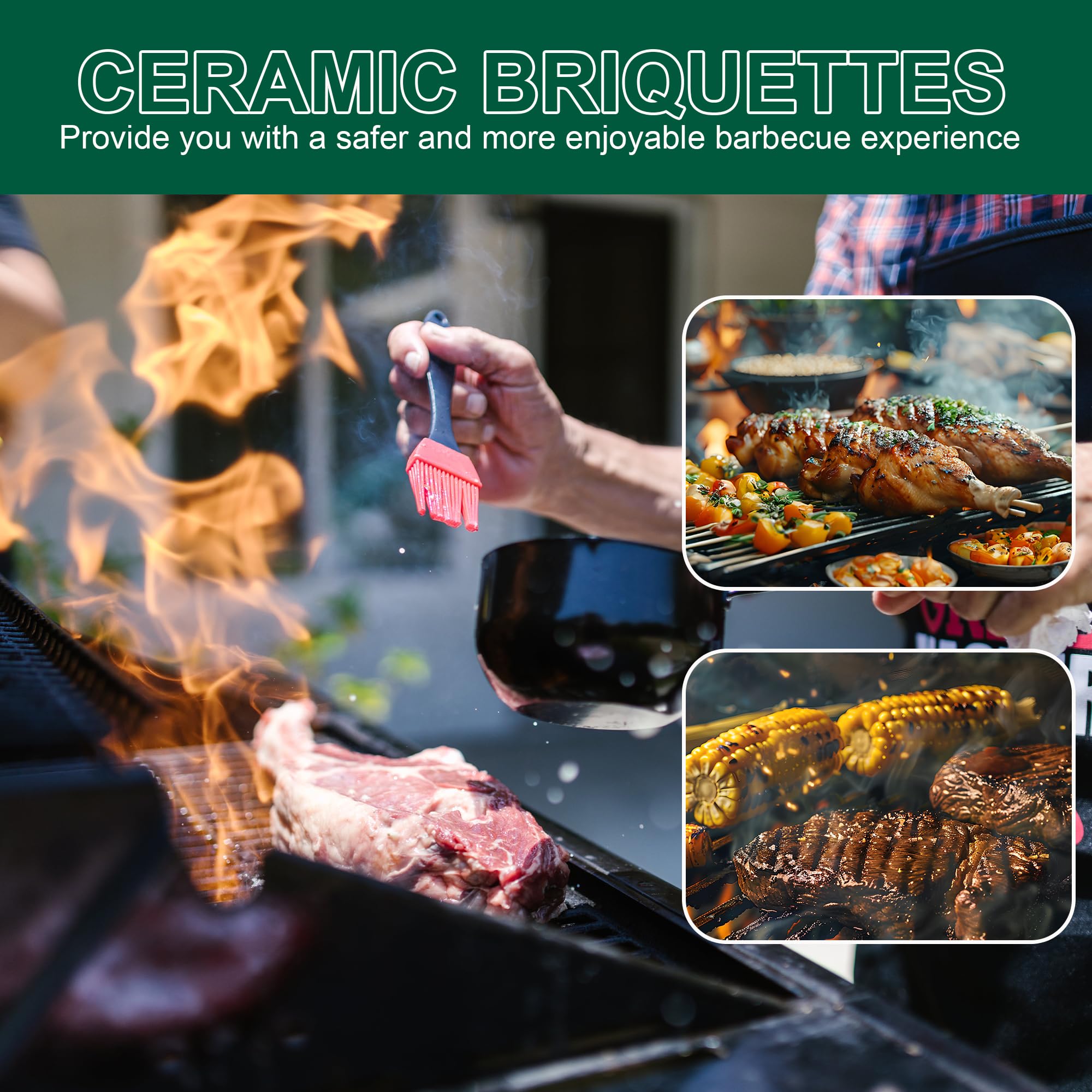 Multifunctional:Grilling with ceramic blocks can reduce flame rise and make the cooking environment safer. Absorb excess oil. Improve heat distribution, so that the heat is evenly distributed on the grill surface, making the cooked food more delicious and providing you with a better grilling experience