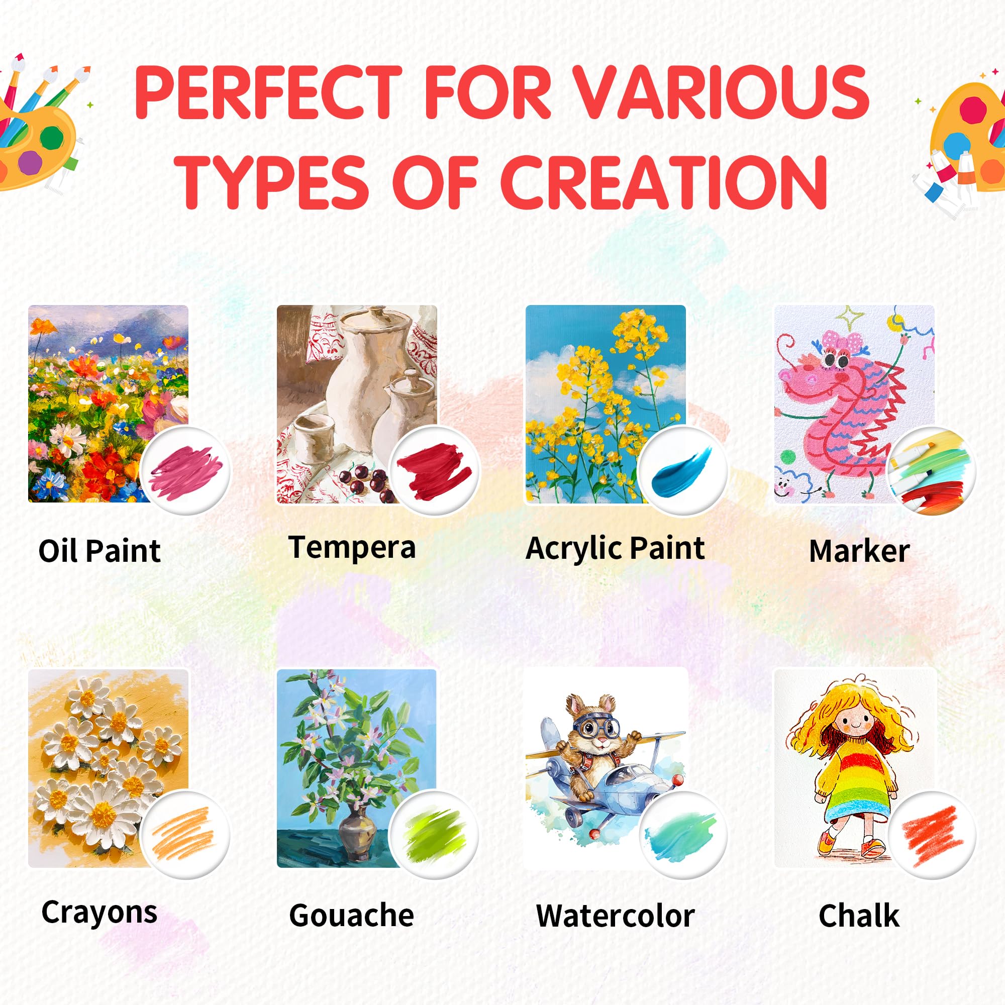 IDEAL FOR: Artists, educators, students, beginners, amateurs, kids, professionals, and DIY crafts. Suitable for acrylic, oil, tempera, and other painting media.