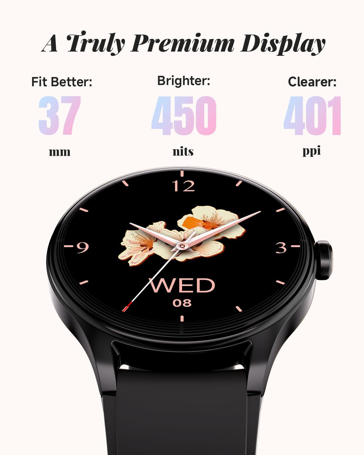 Vivid Display - Boasts a high-definition screen with true, delicate colors and smooth, responsive touch control. Manually adjustable brightness for different lighting conditions. AOD supported. Multiple watch faces available, with custom watch face function.