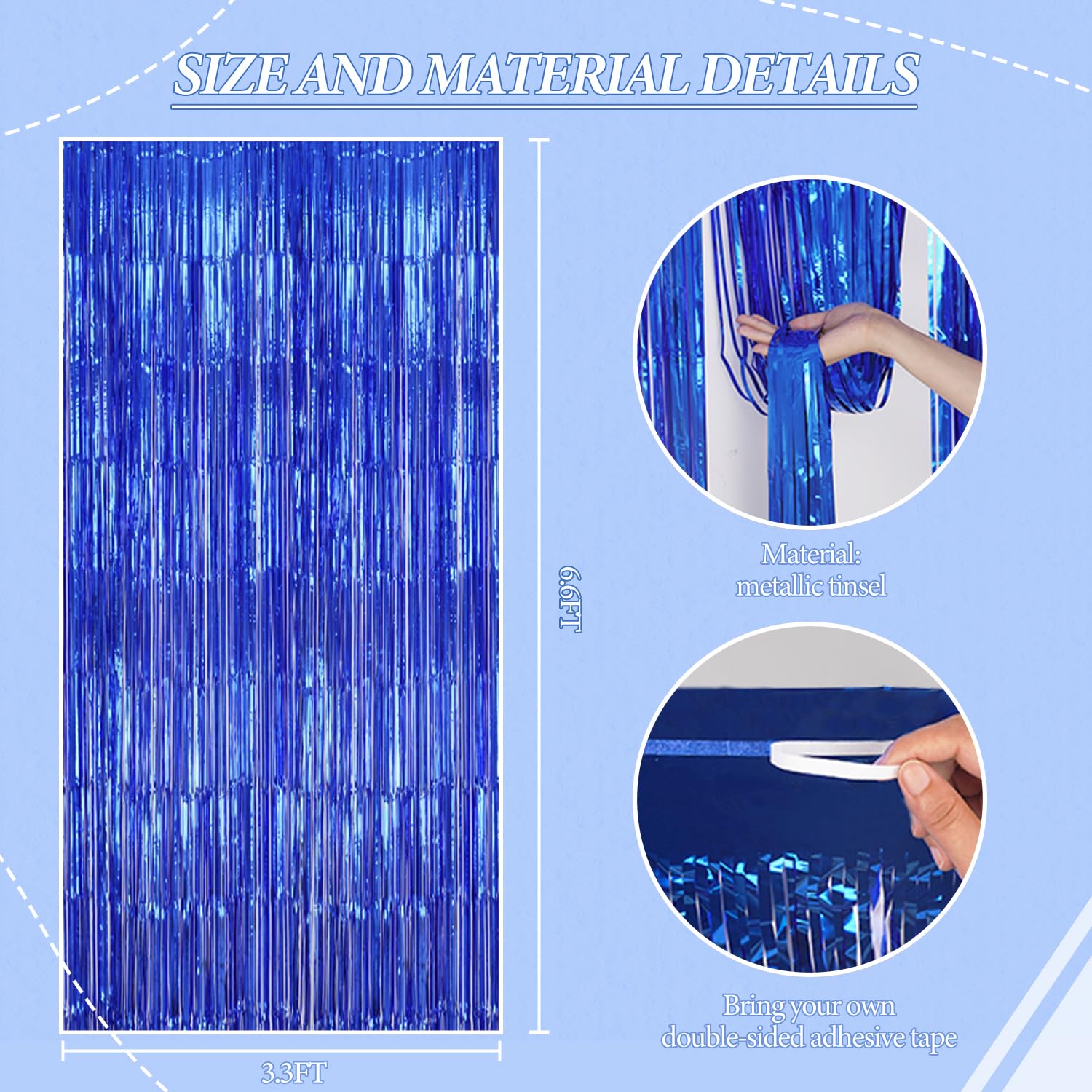 【2 Sets of Foil Fringe Curtains】Each package includes 2 sets of 3.3x6.6 ft foil fringe curtains, providing enough length to decorate your party with ease. Perfect for creating a stunning backdrop for any occasion.