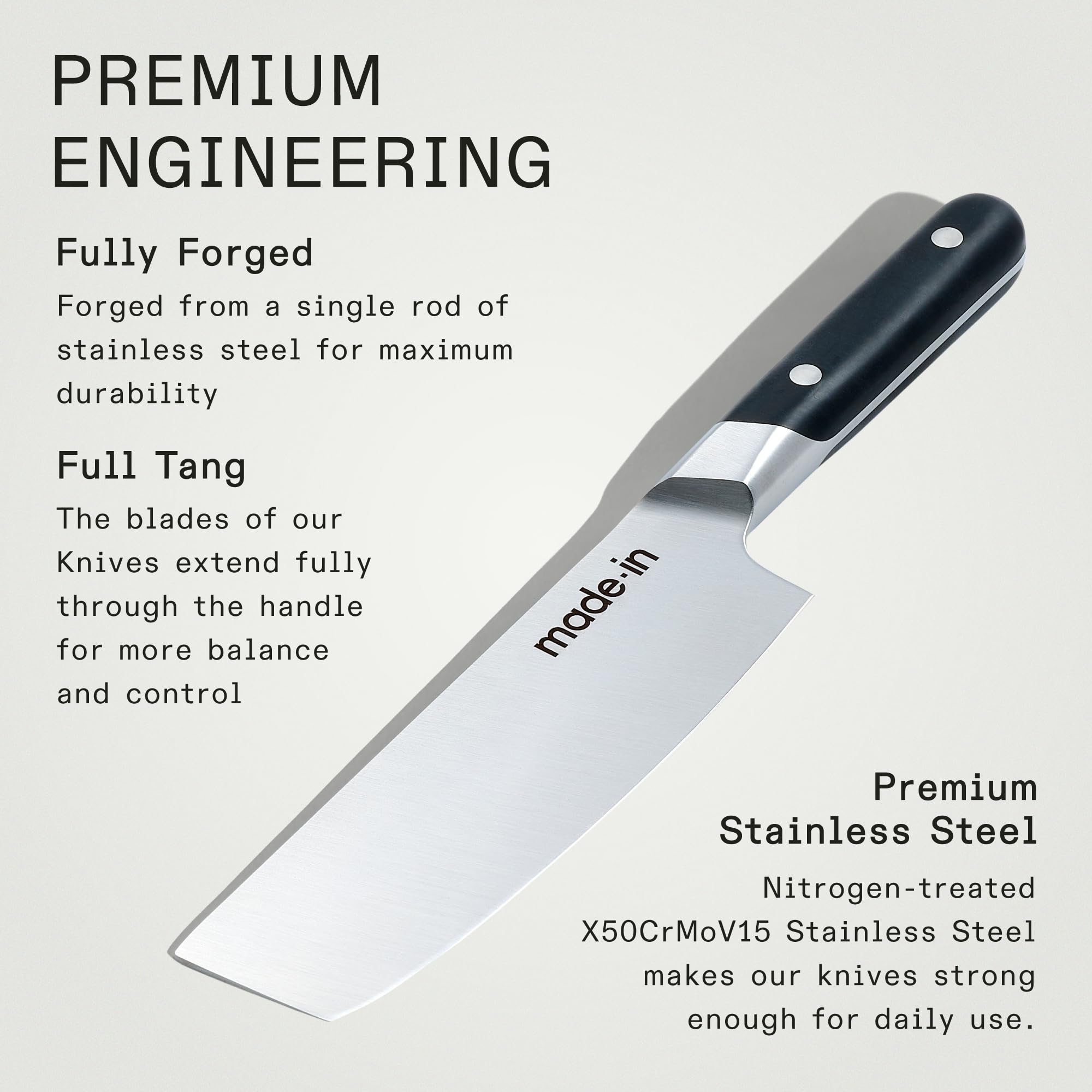 Fully Forged - Made In Knives are forged from a single rod of stainless steel for maximum durability