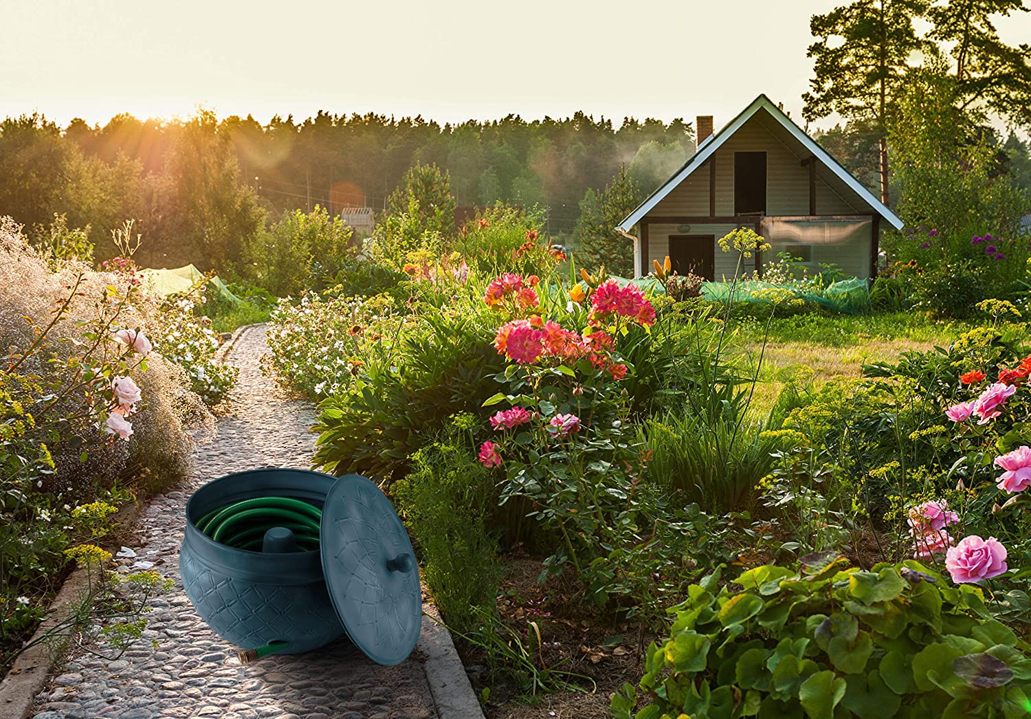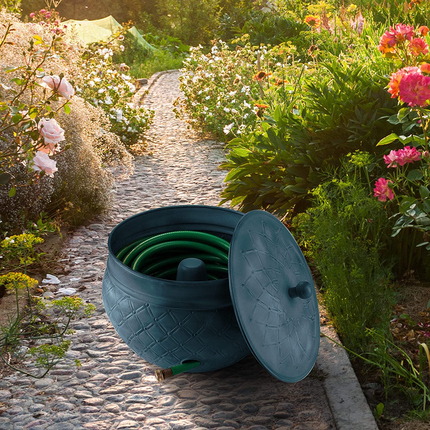 HIGHLY DURABLE AND LIGHTWEIGHT - Our durable hose storage pot can withstand prolonged exposure to heat and moisture. Our hose hider was built to last. Lightweight to provide you with an easy way to store your garden hose and keep everything organized.