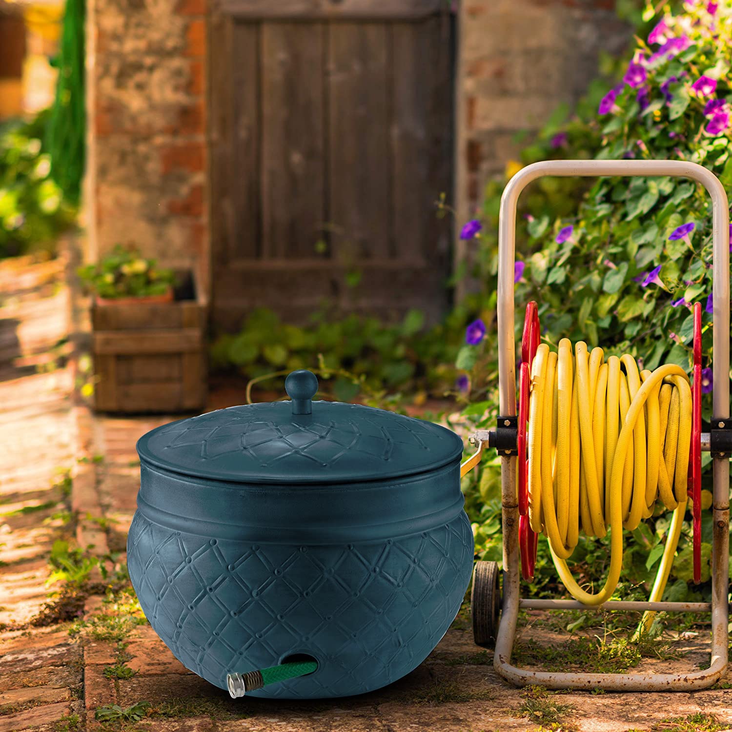 DECORATIVE ACCENT - adds an attractive yet functional touch to your backyard, patio, deck or back porch with our Garden hose holder. NATURAL WEATHERED LOOK - Our Garden Hose Pot Storage with Lid is the perfect choice for anyone that wants to add more rustic charm to their gardens.