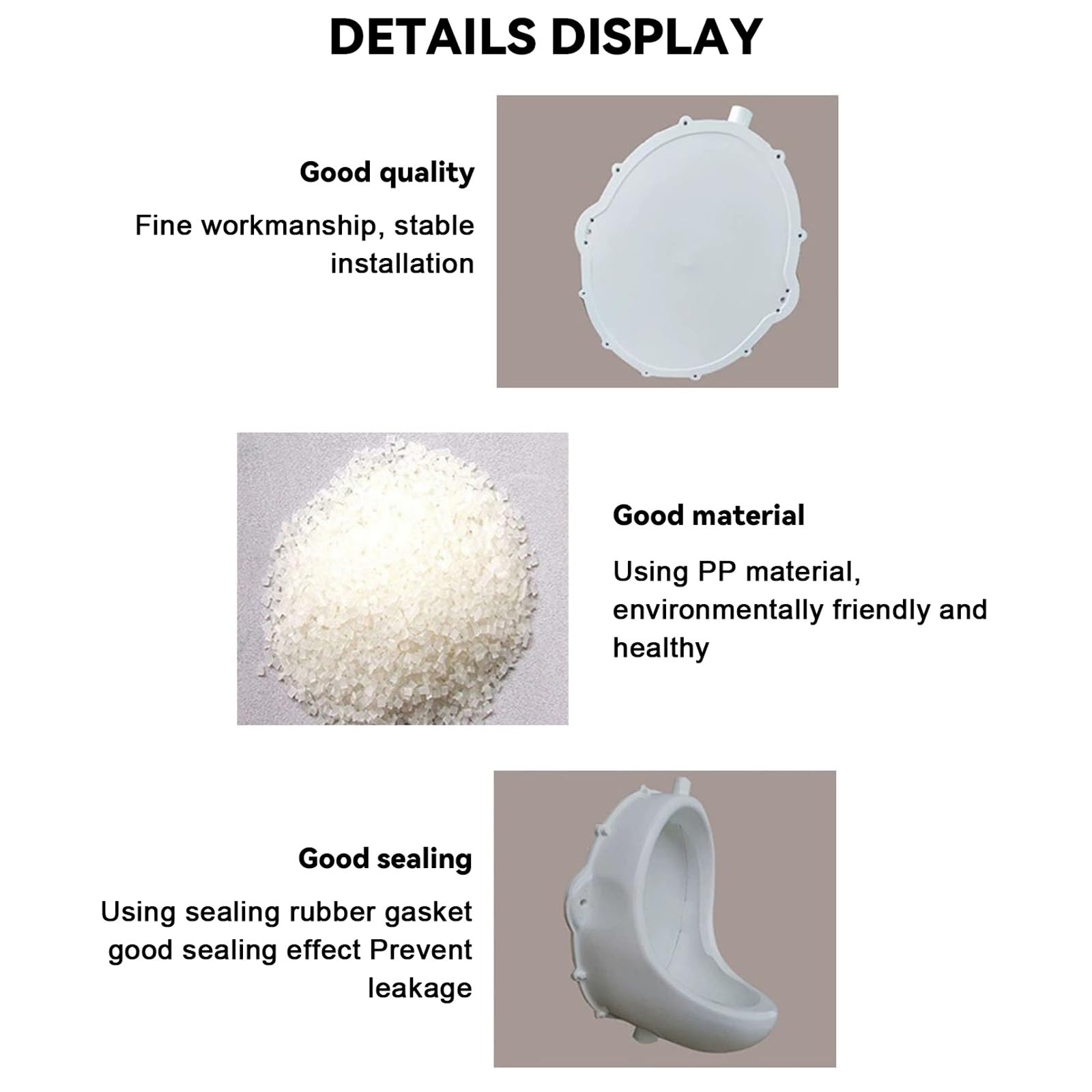 【Waterless Urinal】:This urinal is made, thick PP plastic, featuring a robust structure for years. Its smooth inner walls offer excellent wear resistance and weather resistance, while the natural curved design facilitates easy cleaning, making it suitable for outdoor environments or indoor high-humidity.