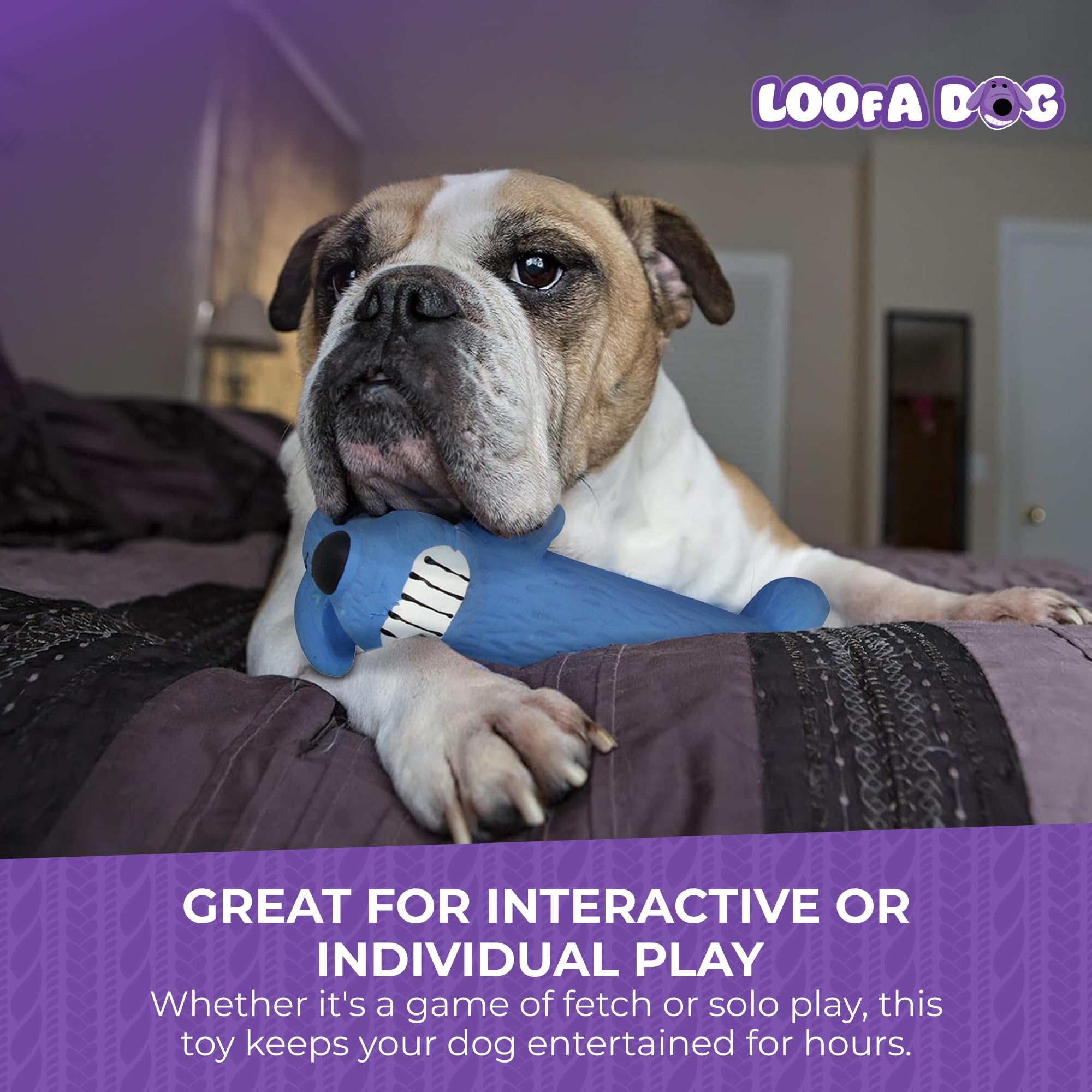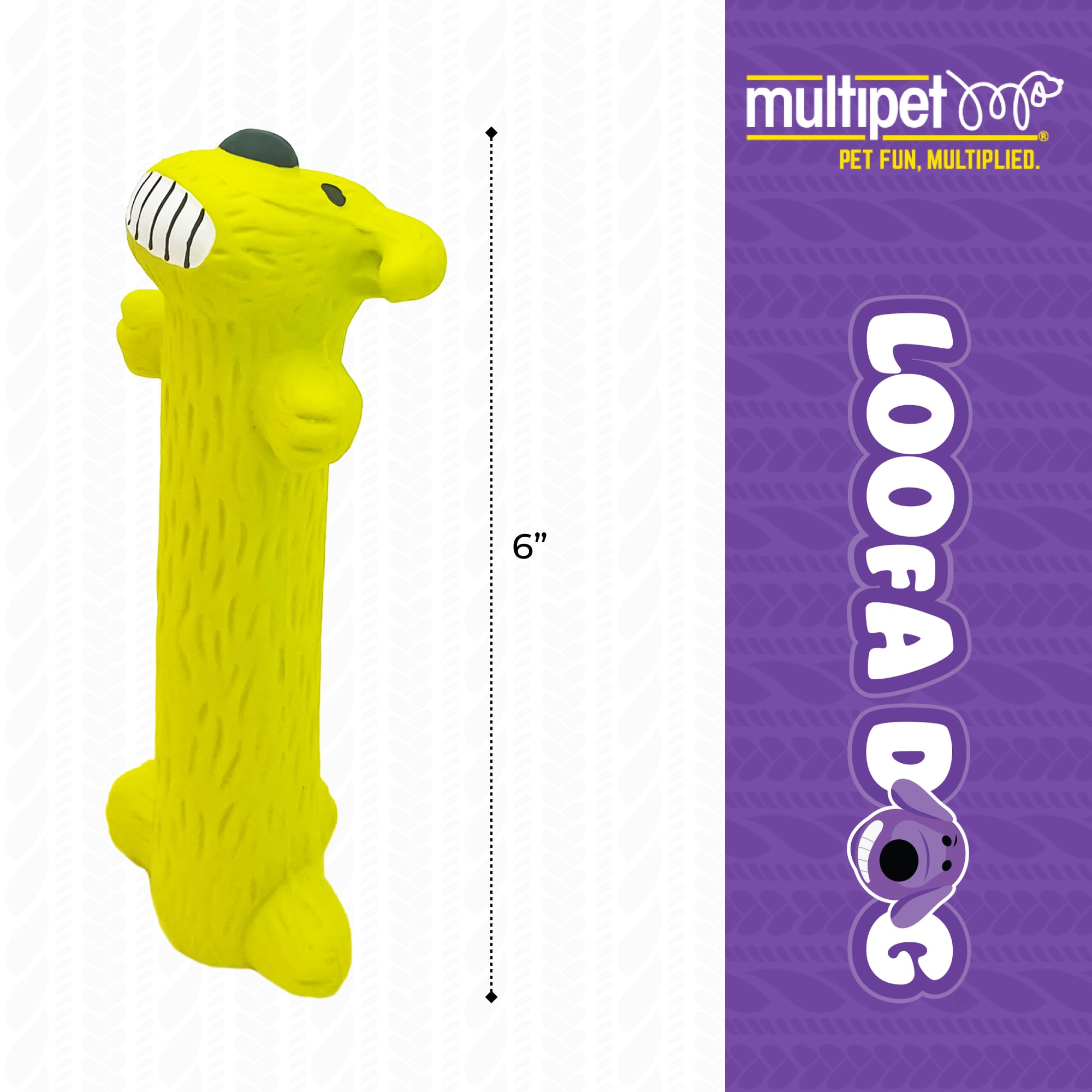 The Original loofa dog is available in a mini latex 6-inch size with a "ruff" design and texture. This latex covered and plush filled squeaky dog toy is designed for puppies and small dogs. Available in assorted colors, you will receive one item at random.