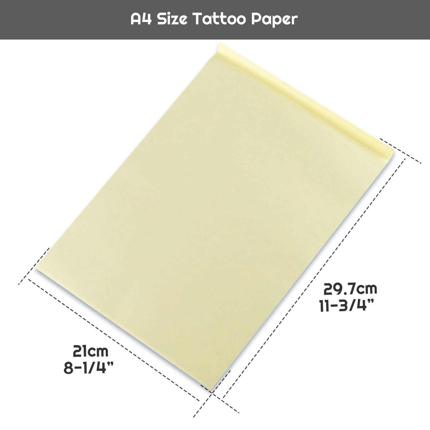 Large Size: The tattoo stencil paper is a 4-ply sheet that includes the master sheet, protective- tissue, carbon, and backing sheet, measures approx. 8 1/4" x 11 3/4" which can be cut down into smaller sheets for more use