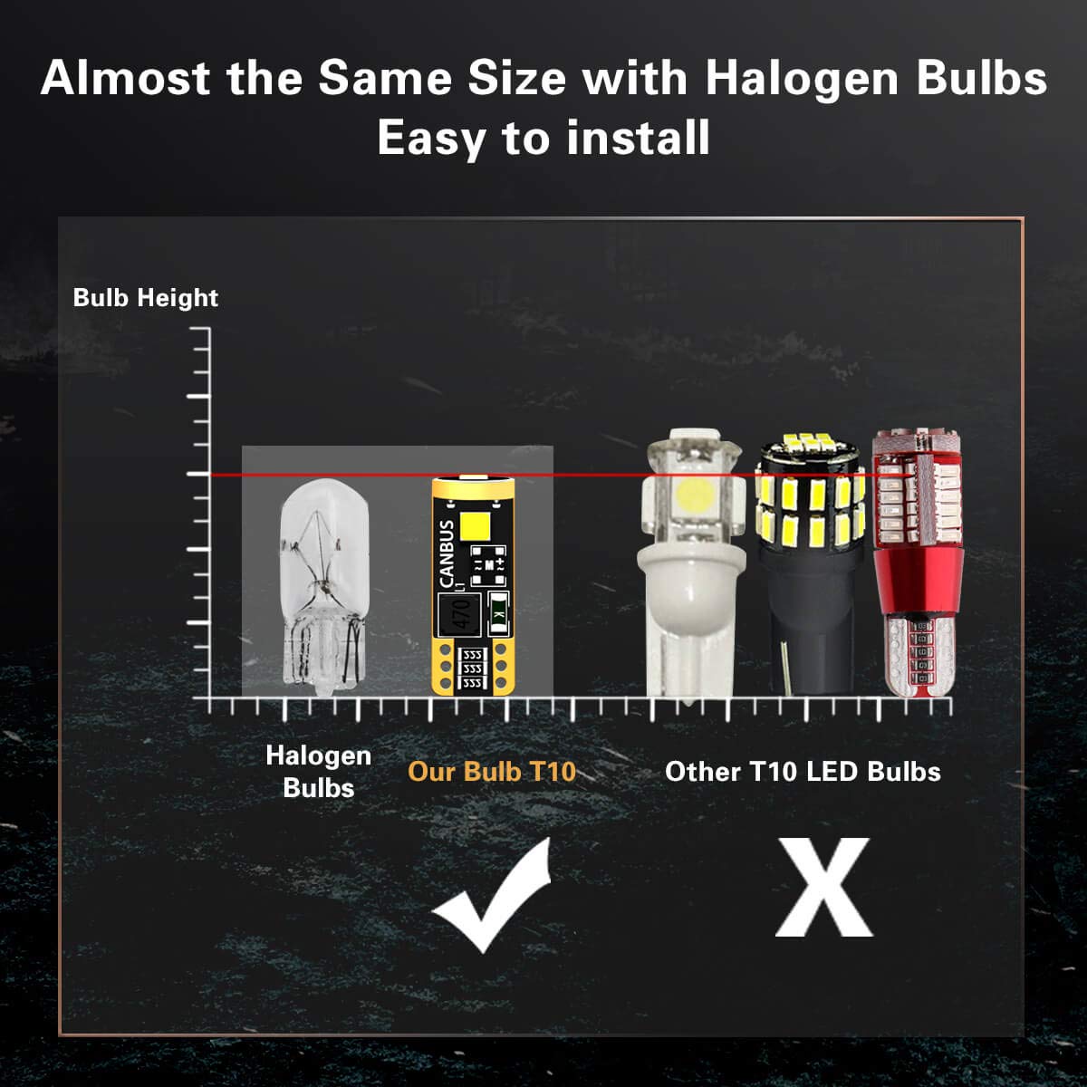 LASFIT 921 LED Bulb & 194 LED Bulb are equipped with premium 3030 SMD chips, delivering up to 1400 lumens of brightness. With no blind spots, they are at least 3 times brighter than original halogen bulbs, providing clearer visibility and improved safety in dark conditions.
