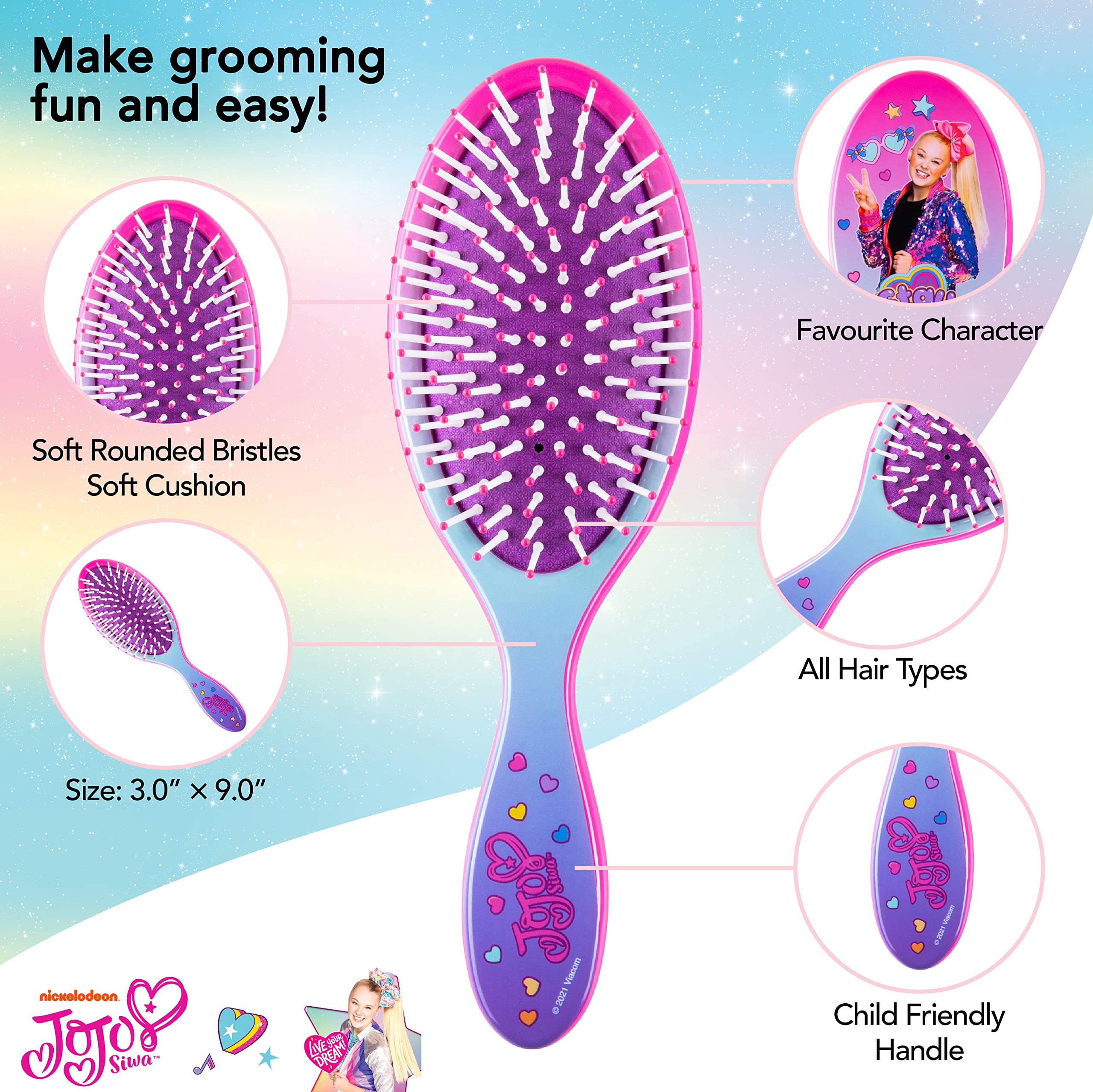 Gentle Detangling: This Hair Brush is made with rounded end bristles to stimulate blood flow to the scalp for healthier hair. It's a detangler brush designed with wide gaps between each bristle making it less likely for hair to break with a Child Friendly Handle