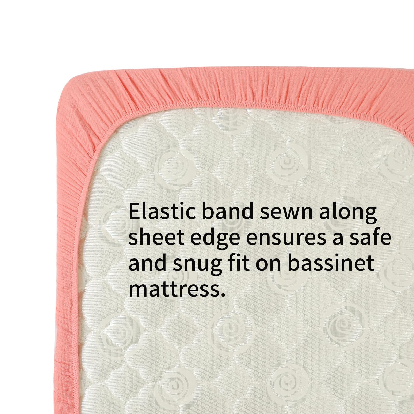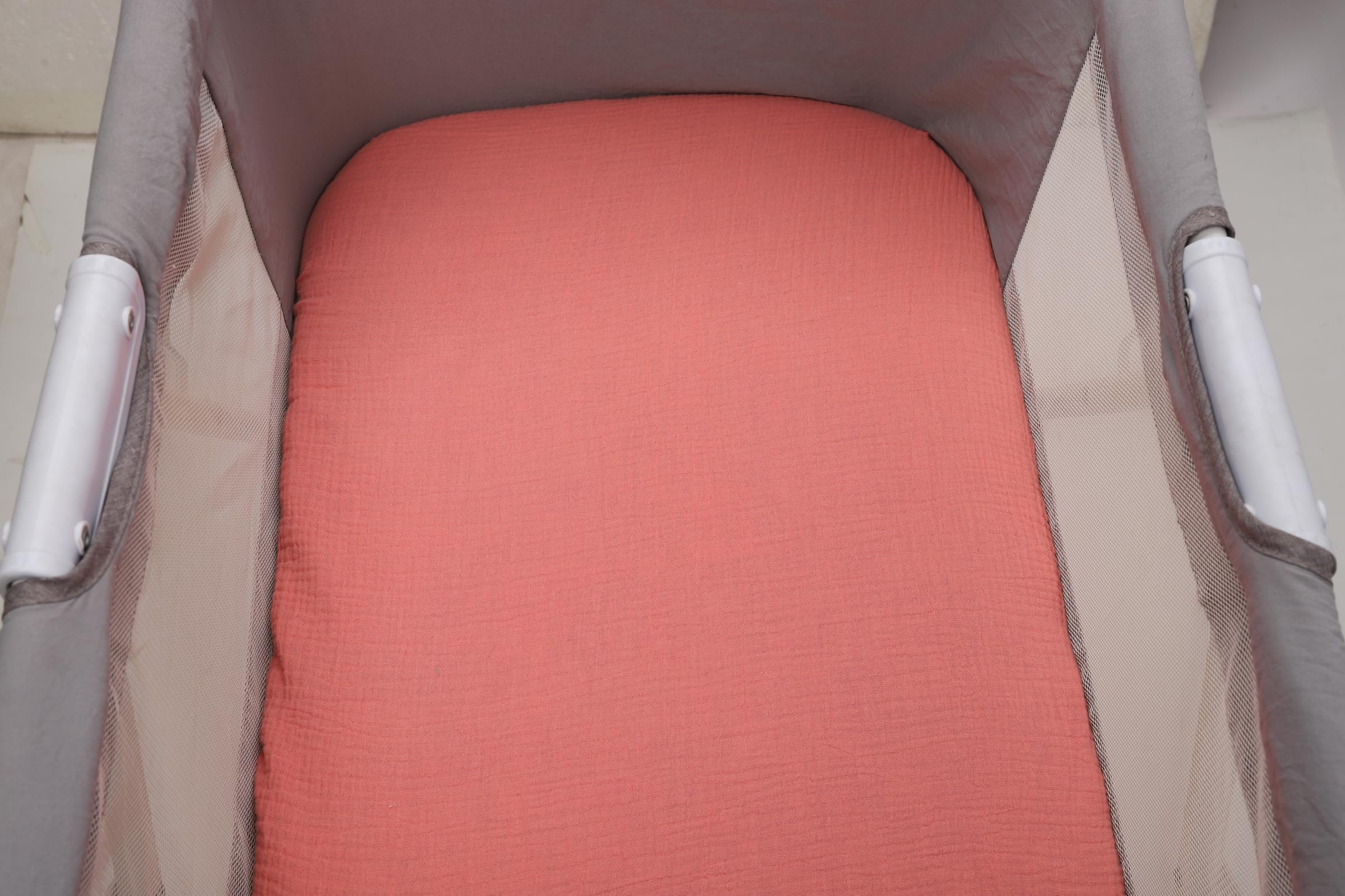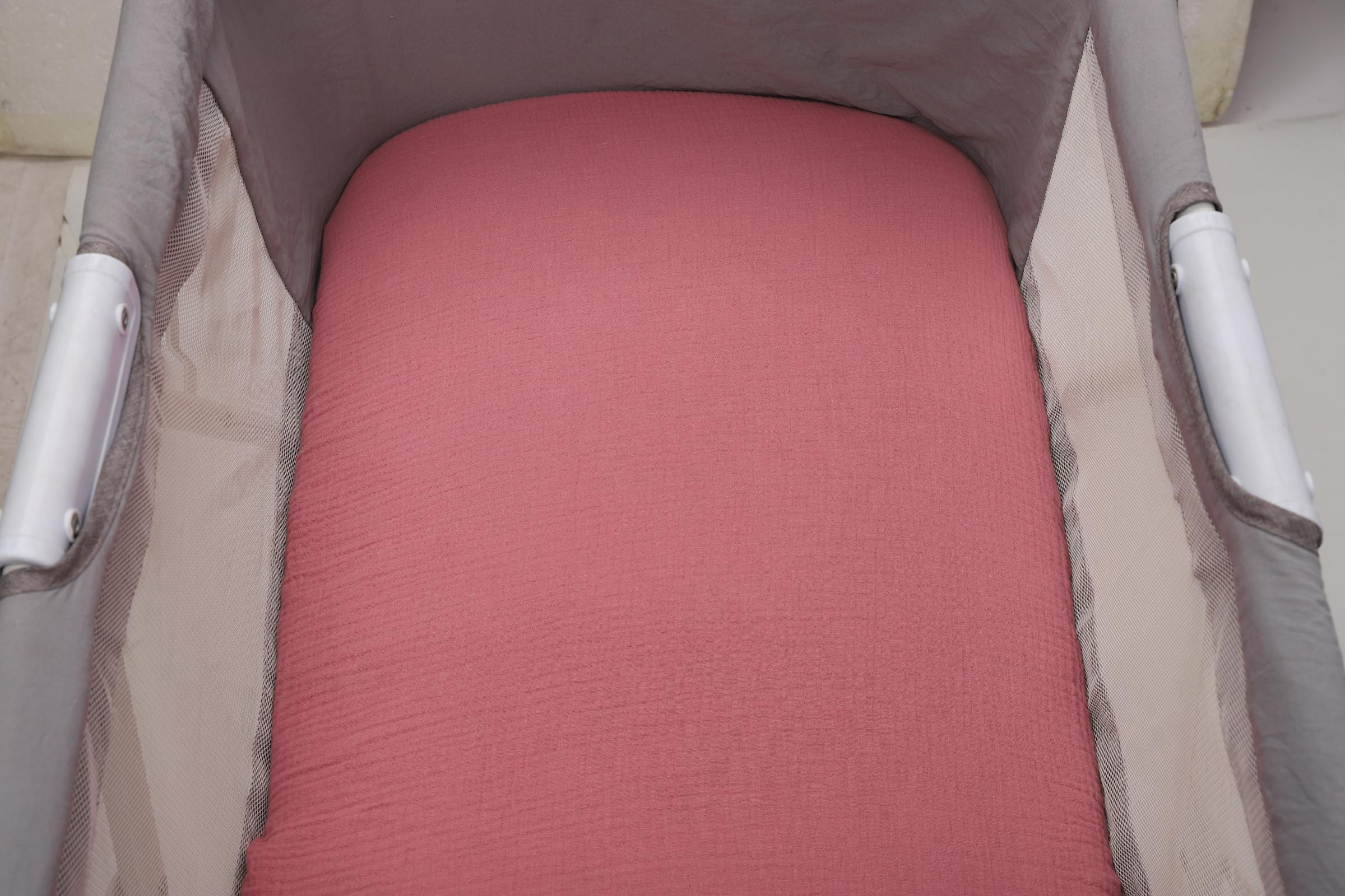 100% Premium Muslin Bassinet Sheets by Onacosht Our muslin bassinet sheets are made of premium 100% cotton muslin, lightweight, breathable and ultra soft. Flexible Size Measures 33"x19"x3", compatible Baby Delight, Mika Micky, Dream On Me, ANGELBLISS, Papablic, Koola, AMKE, Nordmiex, Maxi-COSI Baby Bedside Bassinet, BABY JOY Baby Bedside Crib, RONBEI Bedside Sleeper. Perfect for sensitive skin Muslin cotton is ideal for newborn babies. The open weave allows for airflow to regulate temperature while the soft, lightweight feel is gentle on sensitive skin. Our muslin bassinet sheets provide a cozy layer of natural comfort between baby and mattress, and tightly-woven construction provides super quality and safety. Secure, wrinkle-free fit The fully elastic edge and extra deep pockets provide a snug fit on bassinet mattresses. Sheet stays securely in place all night without popping off, sliding or bunching. Sweet prints for boys and girls Simple and sweet prints for boys and girls, which coordinate with any nursery style, and match muslin swaddles, blankets and other accessories available. Easy care Machine wash warm and tumble dry low. Avoid bleach. Sheet may shrink up to 5% after first wash. For best results, wash before first use. Multiple washes will soften sheet even more.