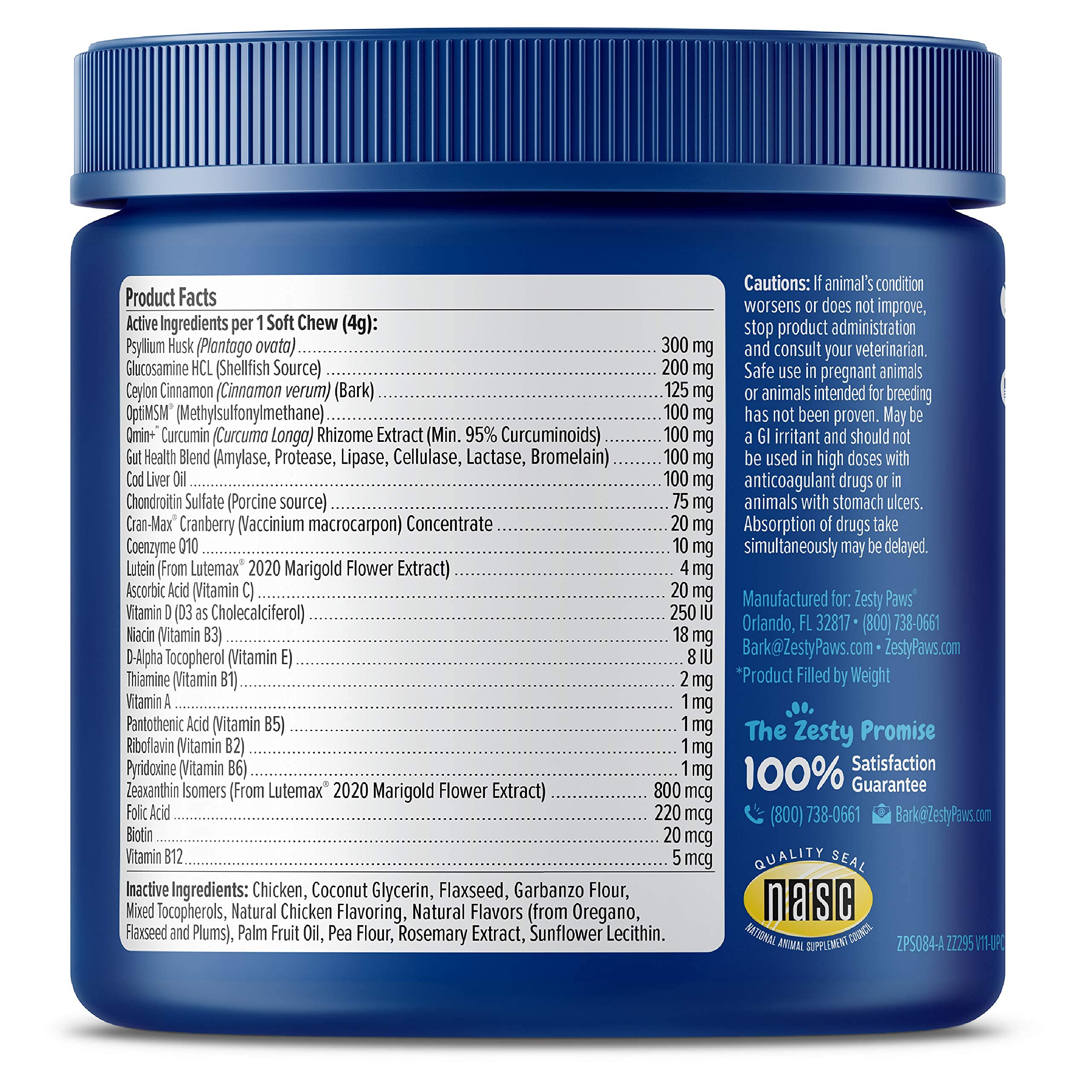 CARDIOVASCULAR, LIVER & BRAIN SUPPORT: This Zesty Paws multivitamin for dogs feature Coenzyme Q10 and Lutemax 2020 for enhanced senior dog vitamins, promoting cardiovascular, liver, and brain health
