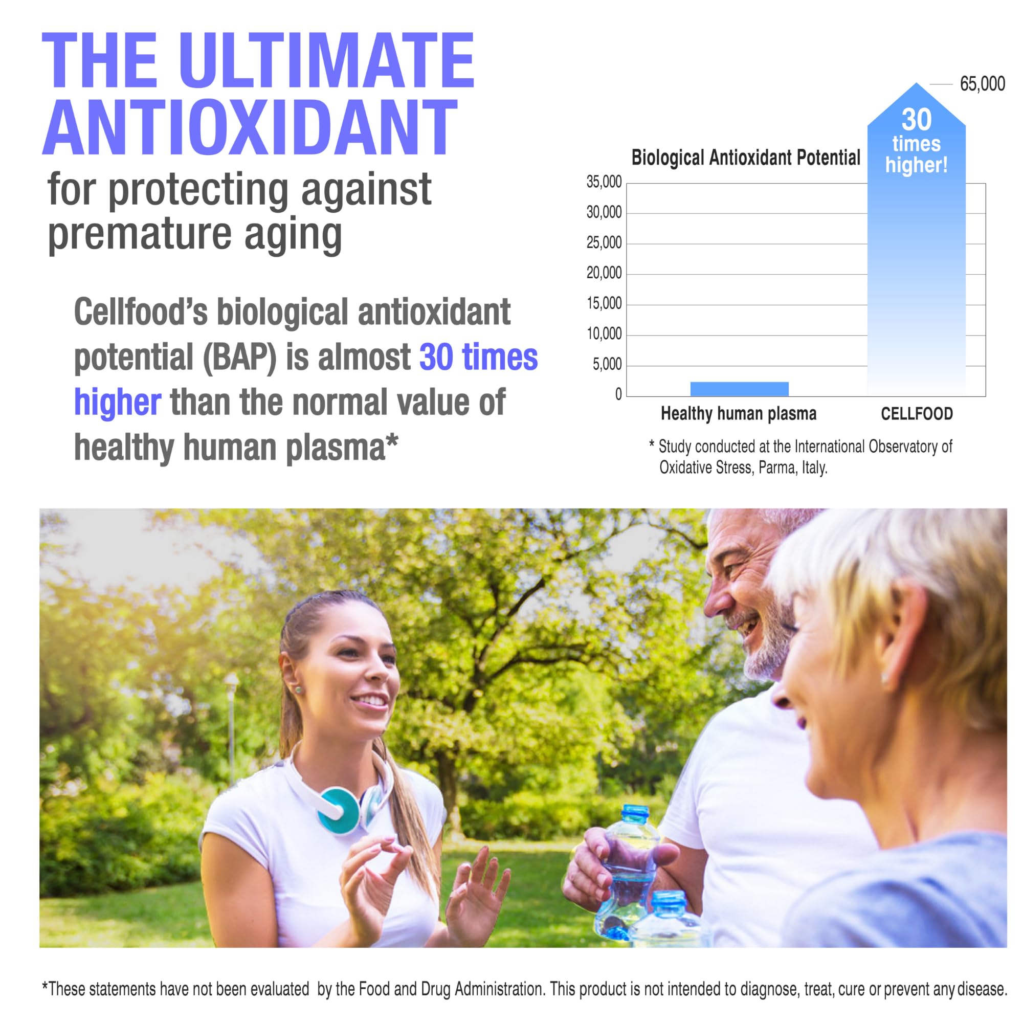 Why Cellfood; Cellfood is a remarkable formula that oxygenates and feeds the cells—cleaning, nourishing, and tuning up the body's systems throughout the day; Supports the immune system, and the reduction of free radicals & oxidative stress.