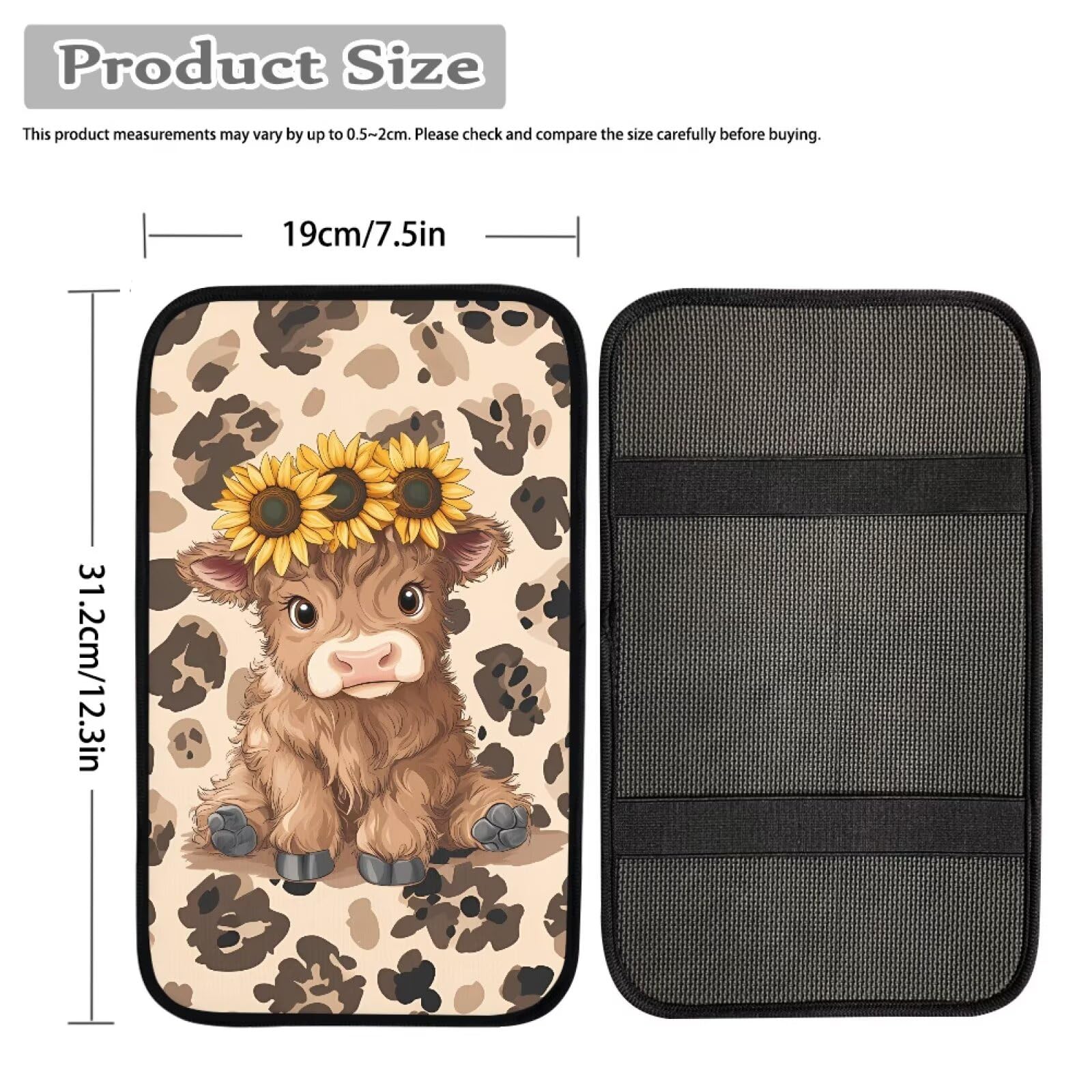 Our armrest pad is 12.6 inch long, 7.5 inch wide that matches most of the auto car center console armrest box, it covers whole top and make it looks different by stylish patterns
