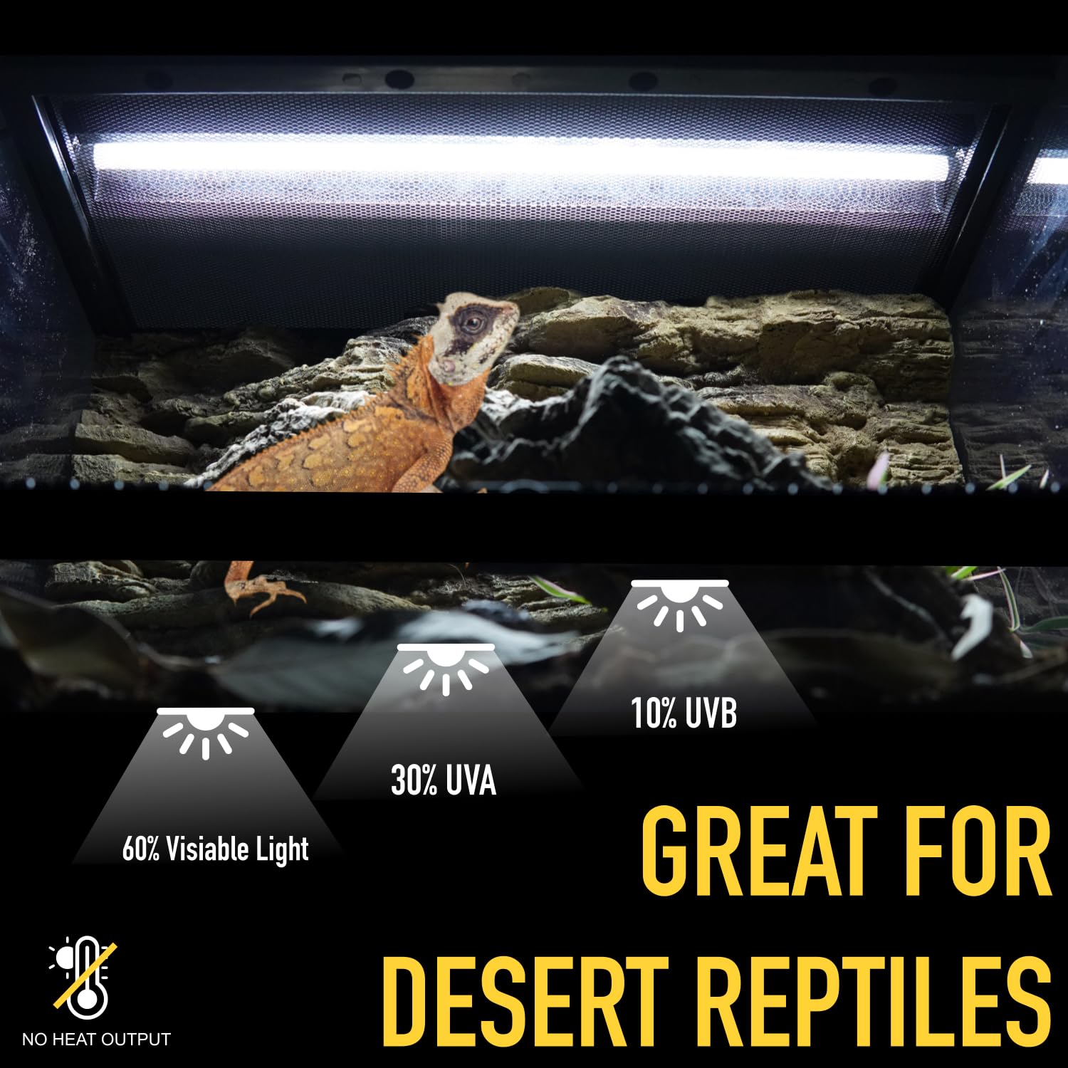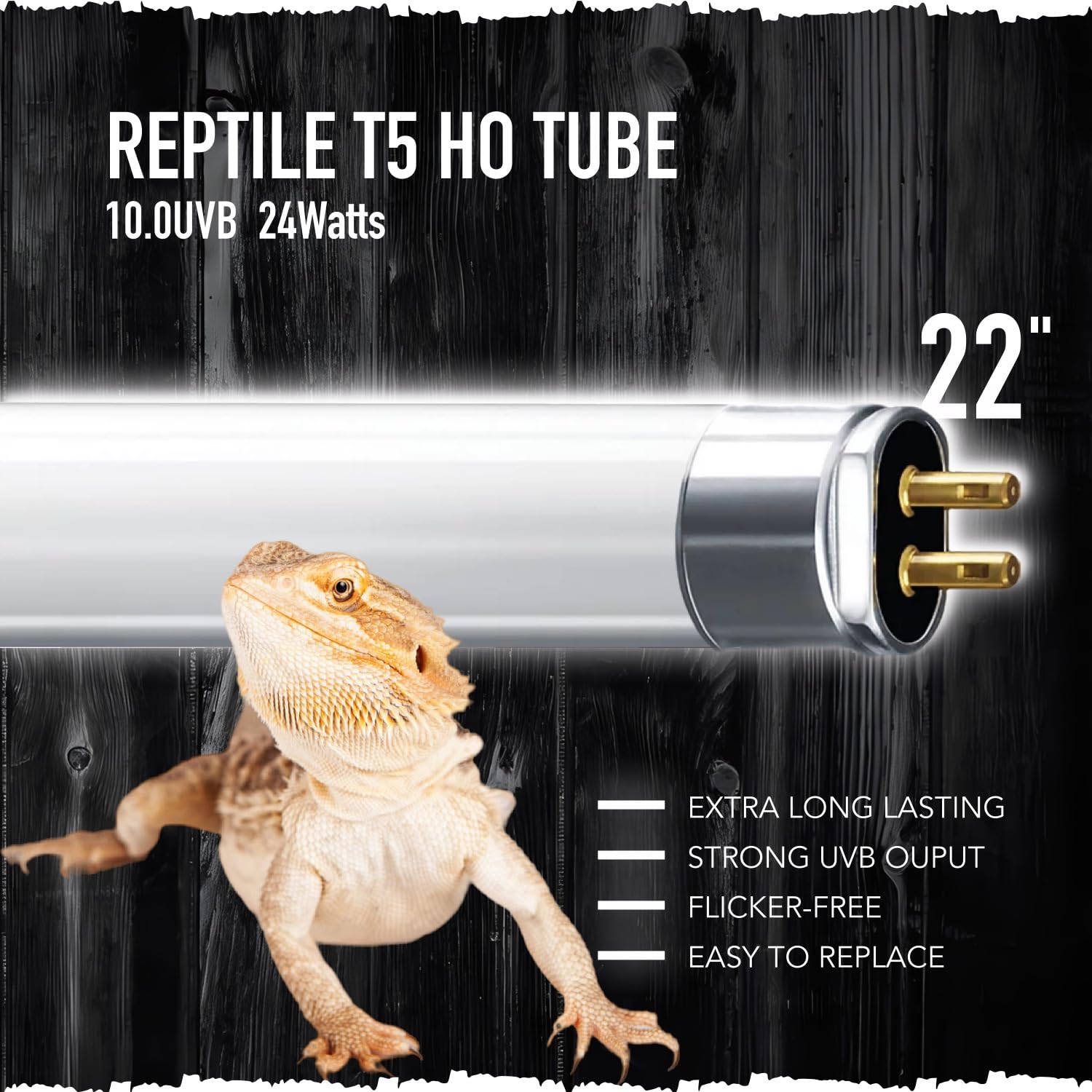 【High Output UVB】Professional designed for desert-dwelling reptiles, high output UVB tubes ensure adequate UVB/UVI illumination at proper basking distances.