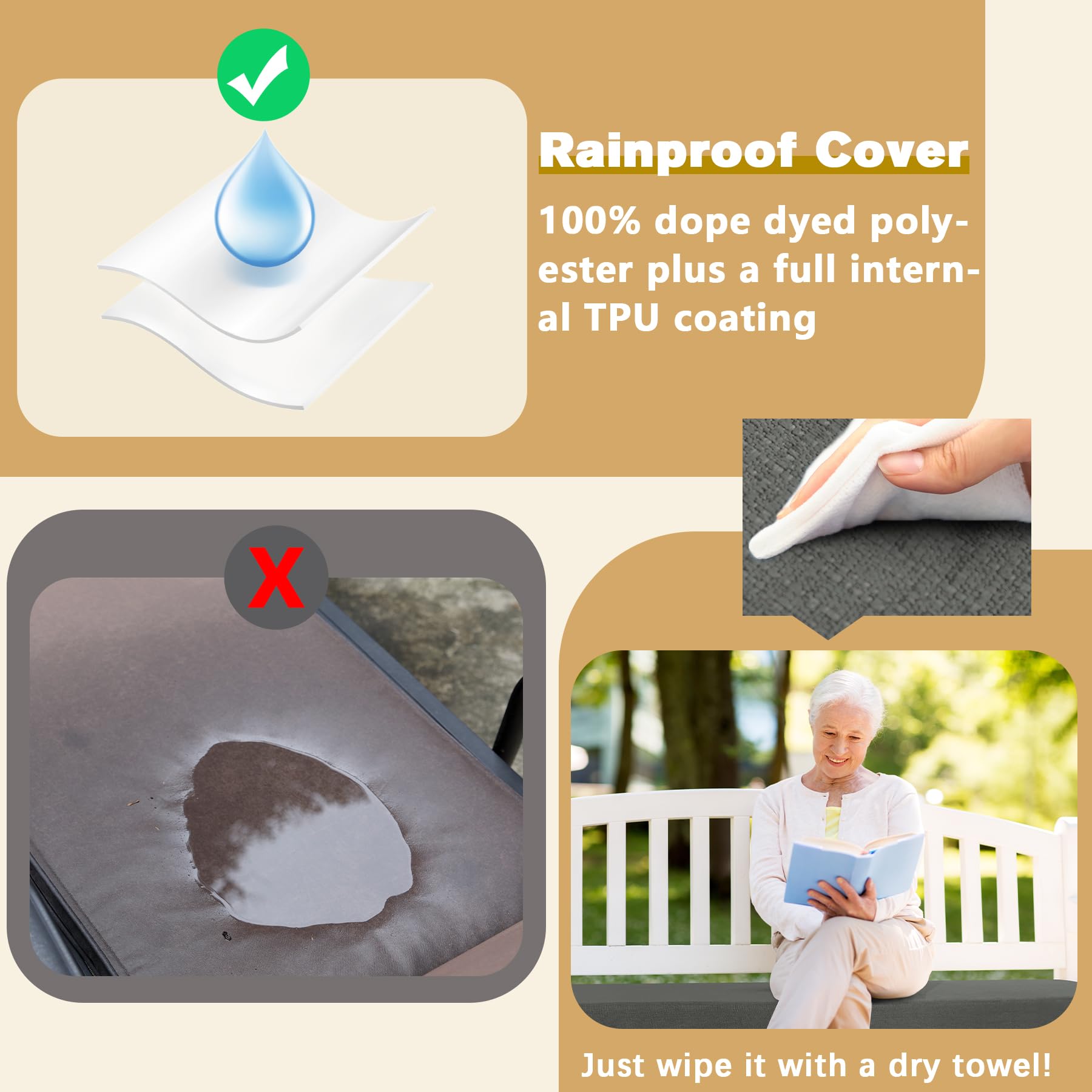 100% Full Rainproof Cushion Cover: Our outdoor bench cushion feature a 100% dope dyed polyester fabric, plus a full internal TPU coating. This material offers excellent waterproofing and dust resistance. Additionally, we have applied the hidden zip to prevent rainwater from getting inside. Favoyard outdoor seat cushion for patio furniture is a perfect decor in garden, patio, porch etc.