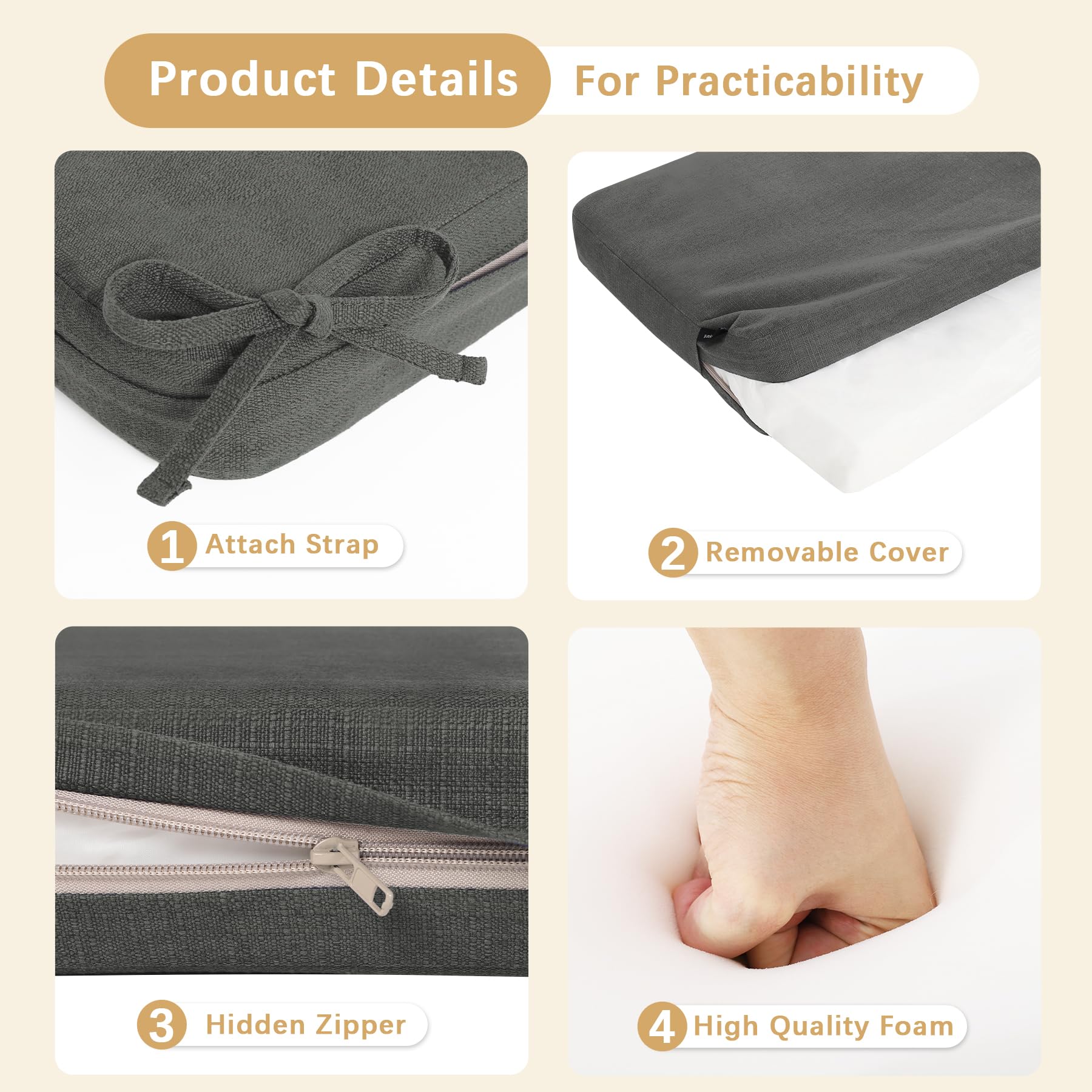 Removable Cover & Details - Our outdoor seat cushion have a removable cover for easy cleaning and maintain. You can wash the cover by hand or in a washing machine and air dry it afterward. Our outdoor cushion is designed with 2 ties, keep your cushions exactly where you want them and also ensure that they look great on your furniture.