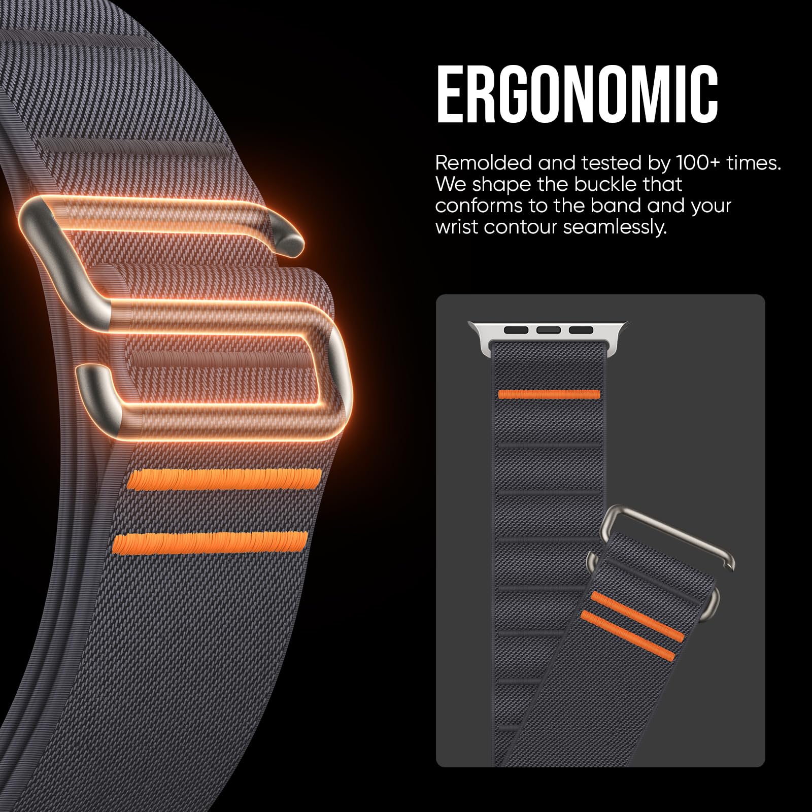 Ergonomic. Your Comfort in Mind: Remolded and tested by 100+ times, the stainless steel buckle finally comes in a perfect S, the ultimate shape that conforms to the apple watch stretch band and your wrist seamlessly, offering a secure, snug fit.