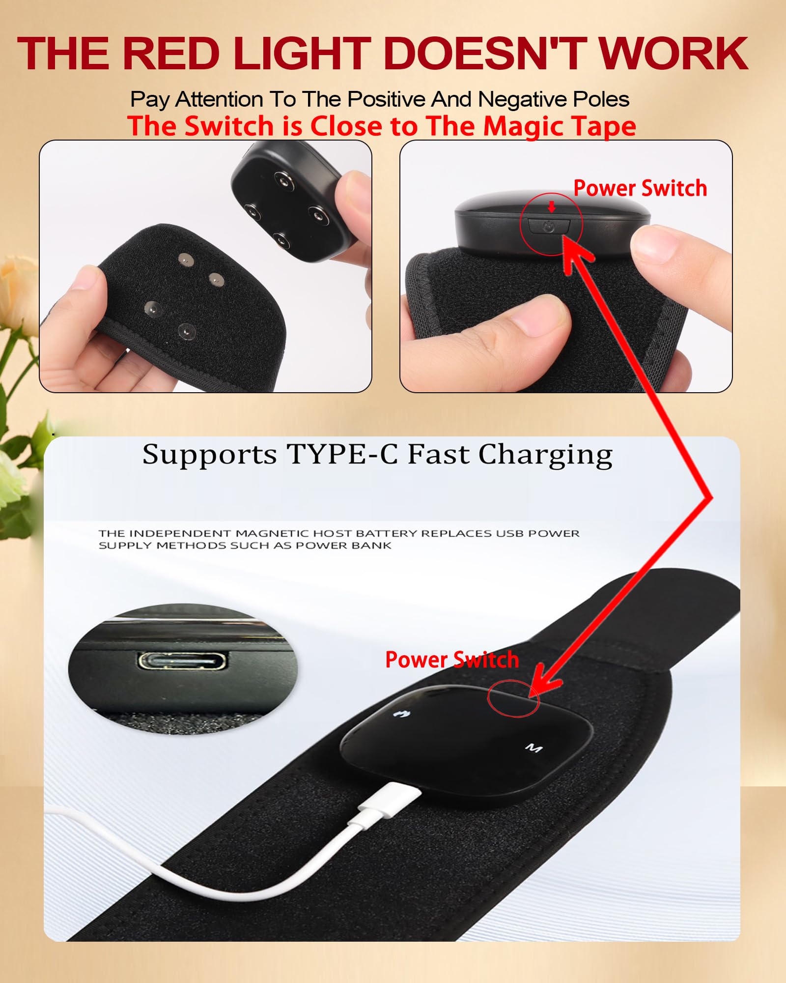 【Portable Rechargeable Design】Dr.WYFOOT red light therapy wrap includes detachable magnetic battery (10W/5V2A) for convenient charging and mobile use. Automatic 30-minute shutoff for safety.