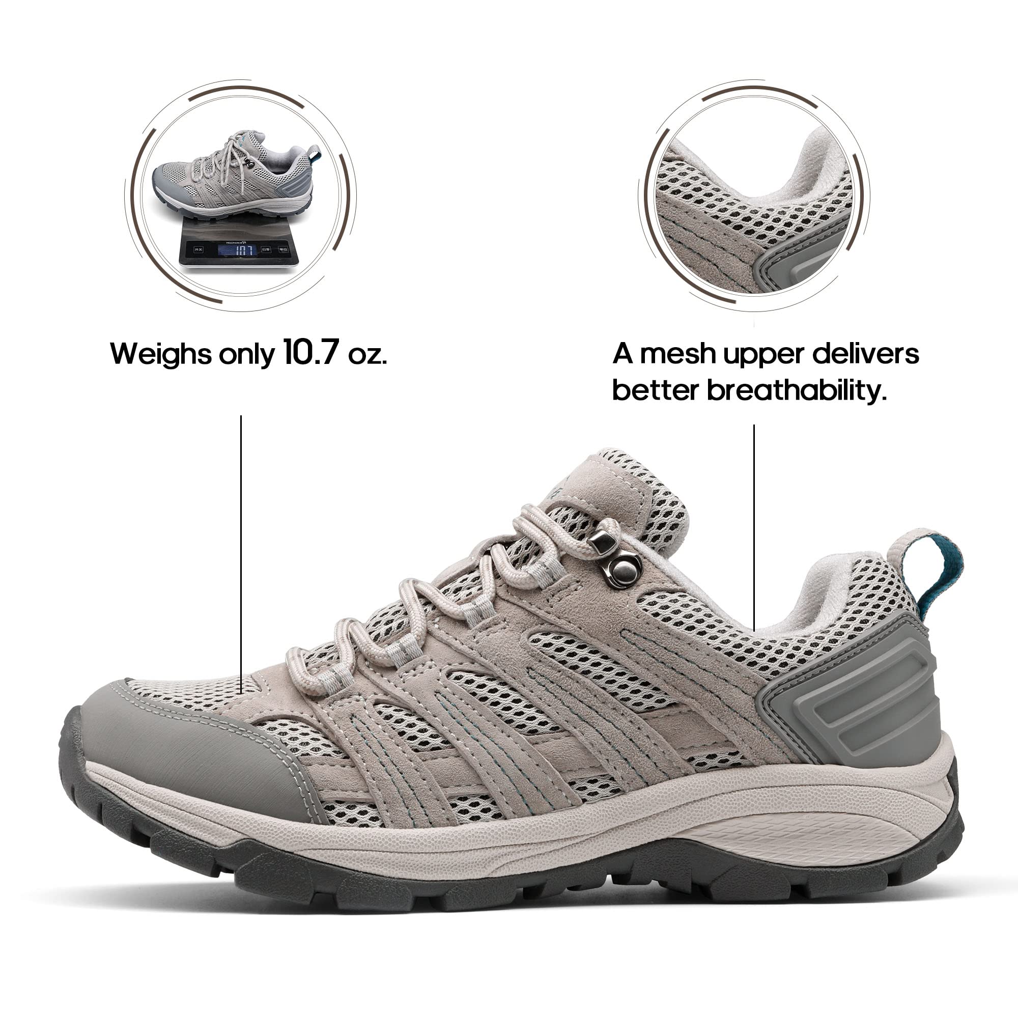 All-Day Comfort: Designed with breathable materials and lightweight construction, these women's hiking shoes ensure lasting comfort during hiking or long walks.