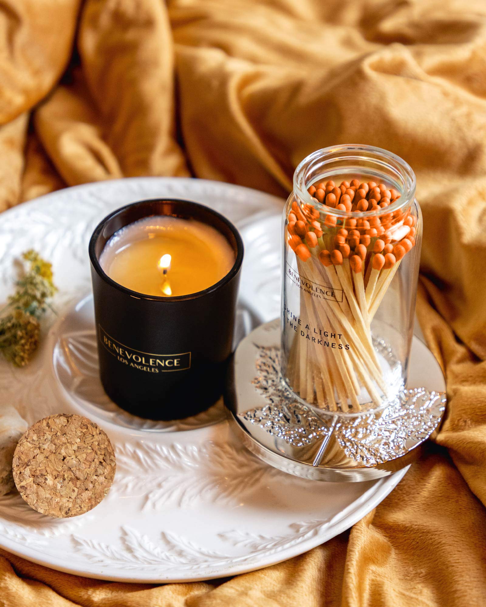 HIGH-QUALITY KILN-DRIED PINEWOOD: These sturdy, kiln-dried Pinewood 4 inch matches, comes with a striker and holds decorative matches in a apothecary jar that's super easy to light. They burn clean and are securely stored in a premium, reusable glass jar.The holder for the matches not only shields them from dust and moisture but also serves as a stylish decorative element.