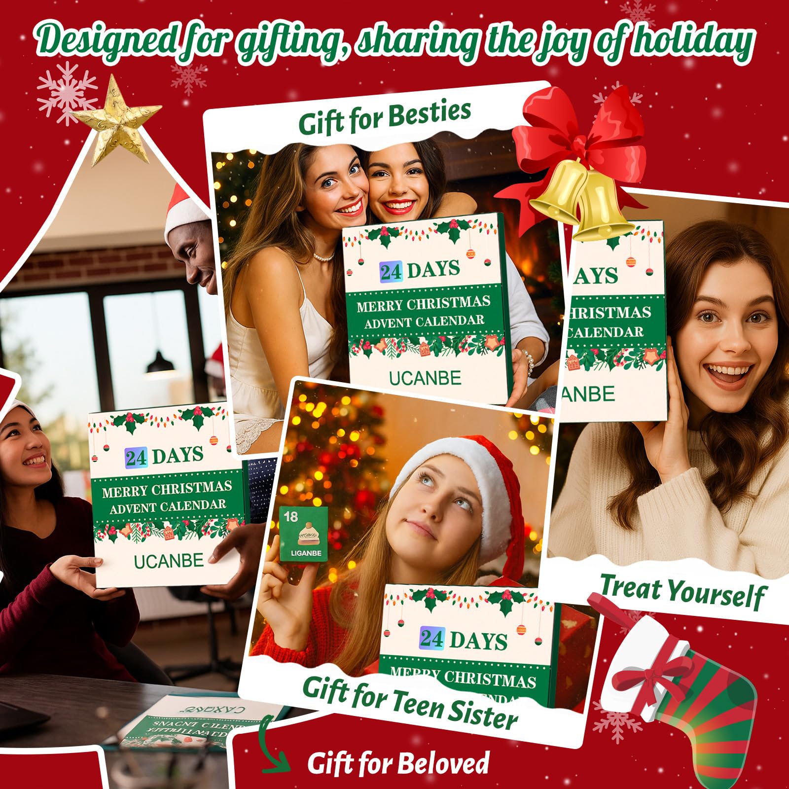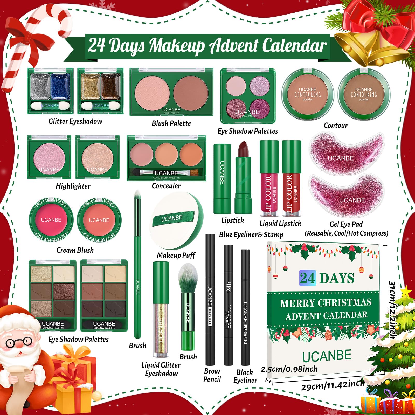 【Perfect Christmas Gift for Makeup Lovers & Yourself】Designed for gifting, fun for beauty lovers of all ages, this UCANBE 24-day makeup advent calendar comes in a festive ready-to-gift big size box, inside it, each product separately packaged in its own Christmas-themed box. Great for holiday gifting(such as Thanksgiving, Valentine's Day), Secret Santa, stocking stuffers, wedding, birthdays, or simply treating yourself to a little beauty joy each day of December. A thoughtful gift for wife, daughters, girlfriends, sisters, and beauty beginners & lovers.