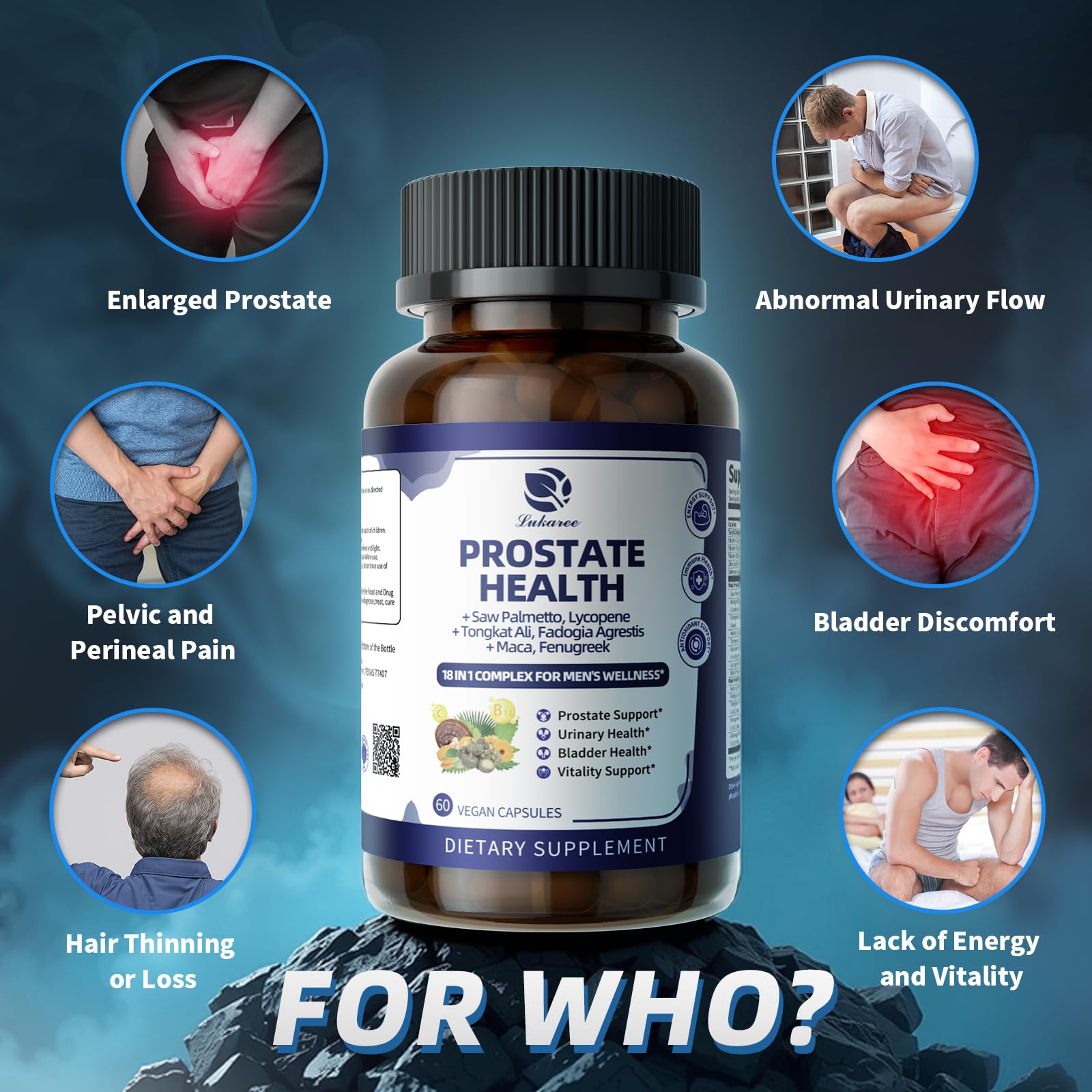 18-IN-1 Advanced Formula: Lukaree’s prostate health formula combines 18 carefully selected ingredients to support prostate health, urinary tract health, DHT balance, hair health, overall wellness and more. Daily maintenance is in place in one step