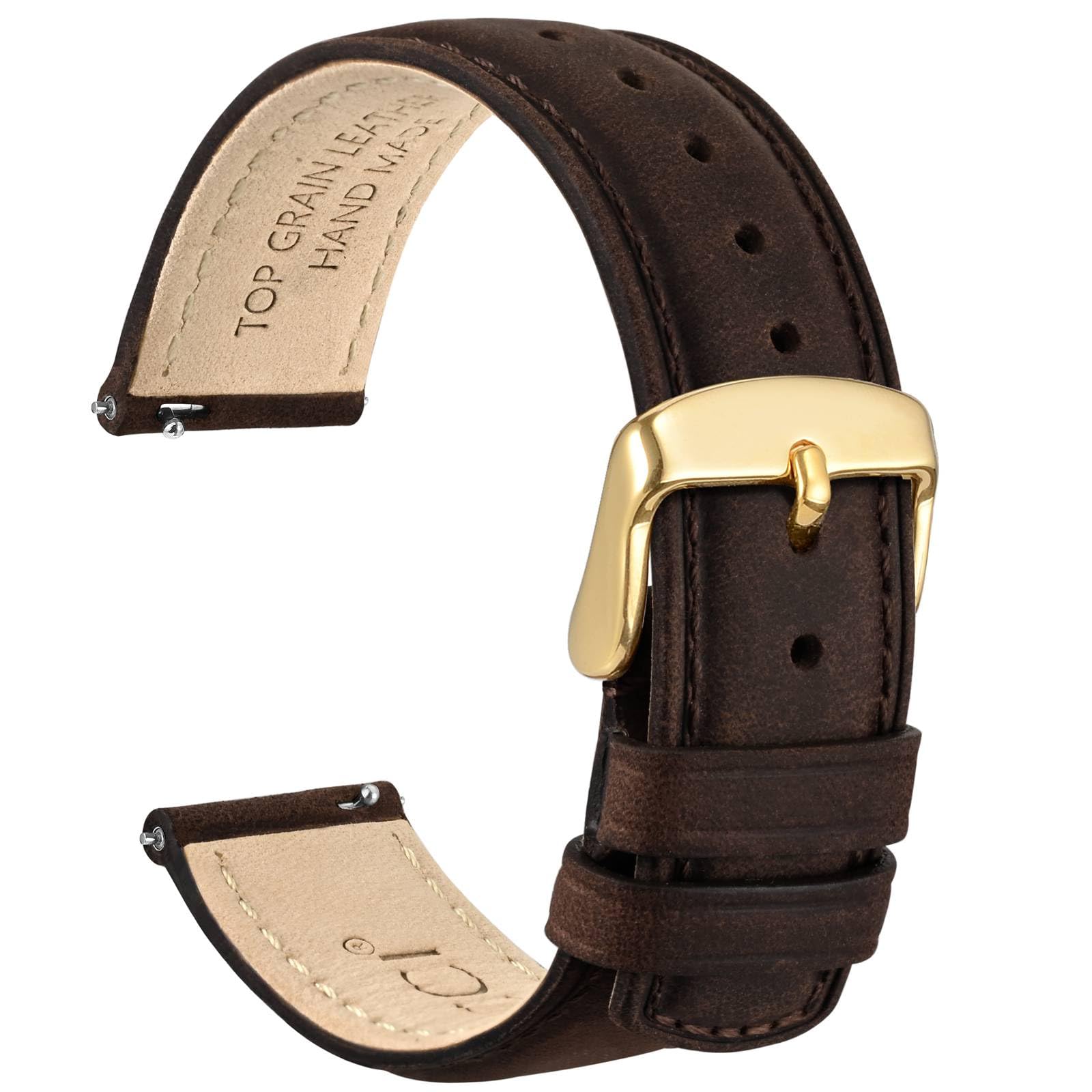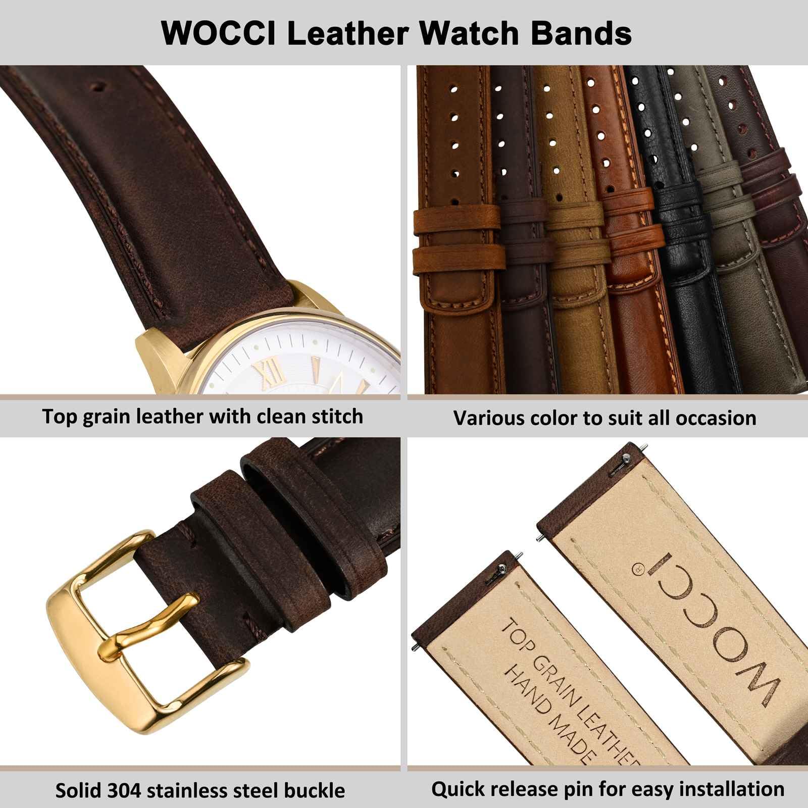 Watch Strap Material: Made of top grain leather in distressed workmanship and the lower layer that touches the wrist is comfortable suede calfskin lining, with classic tone to tone stitch and solid stainless steel buckle. These bands strike the perfect balance between durability and style, making them suitable for both casual and formal occasions