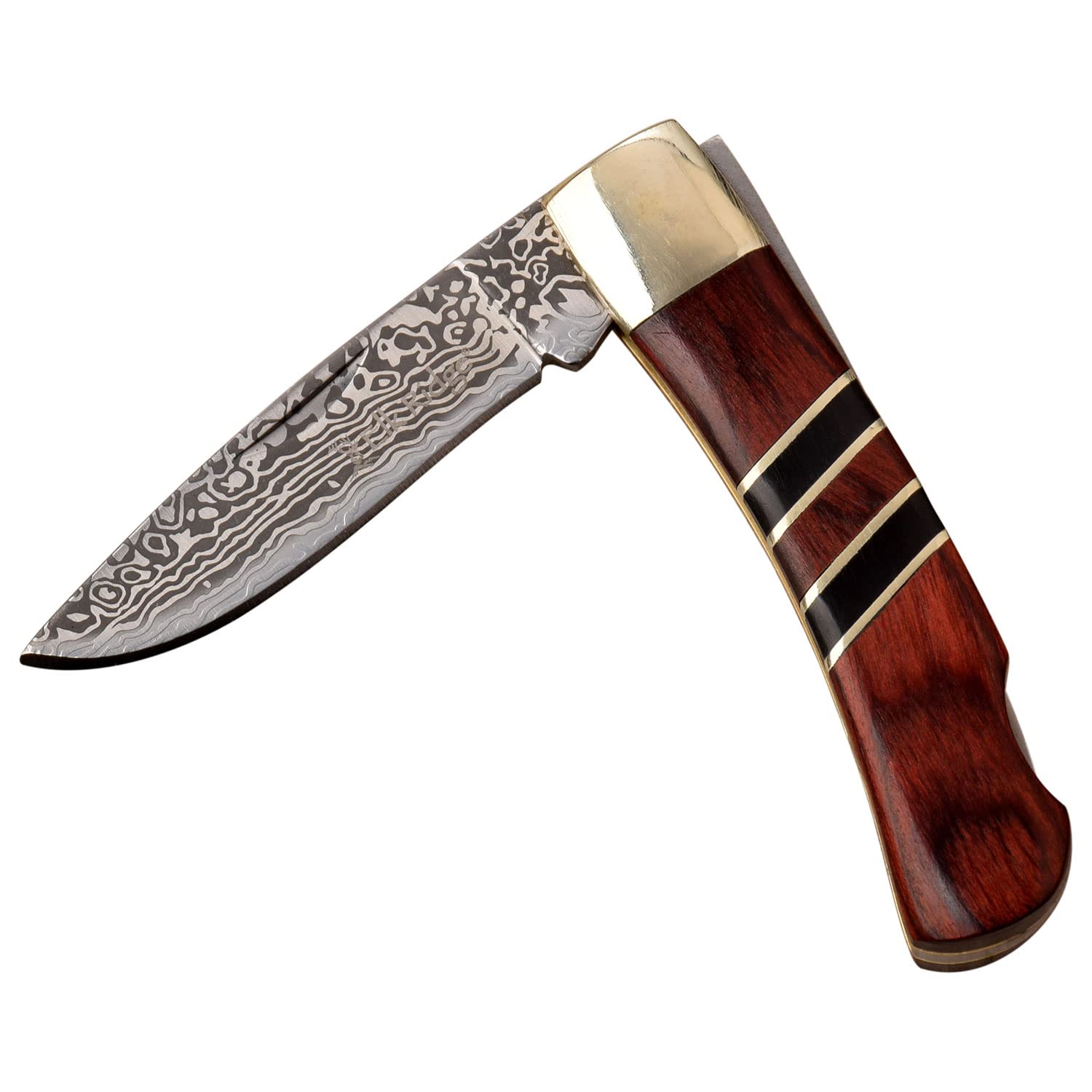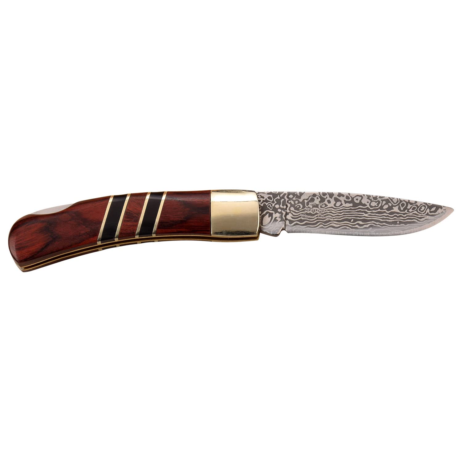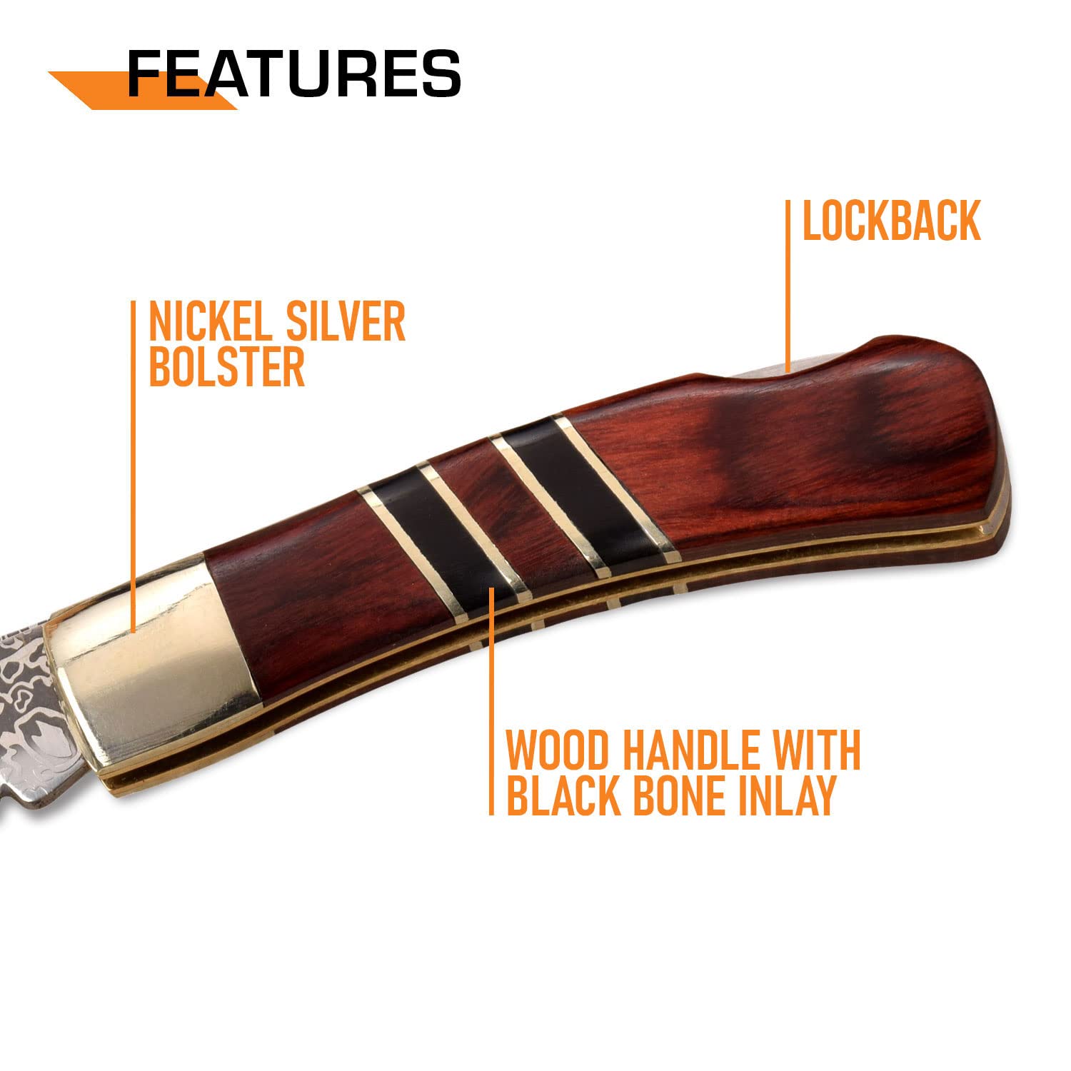 SPECIAL FEATURES: Manual Folding Knife – Lock Back, Brown Wood Handle with Black Wood Inlay and Nickle Silver Bolster.