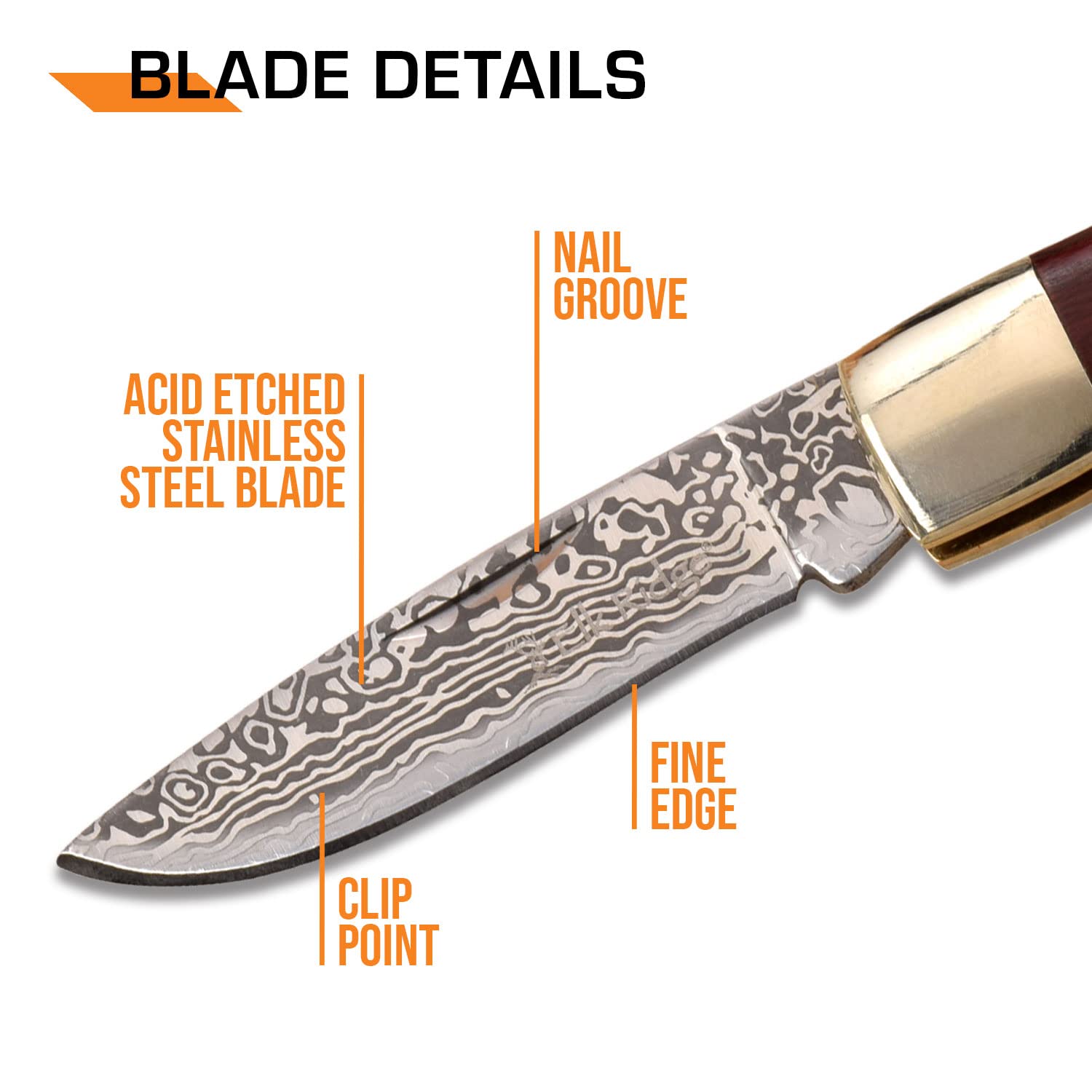 HIGH QUALITY MATERIALS: Made from quality materials. 3CR13 acid etched stainless steel fine edge drop point blade provides an excellent balance of hardness and corrosion resistance.