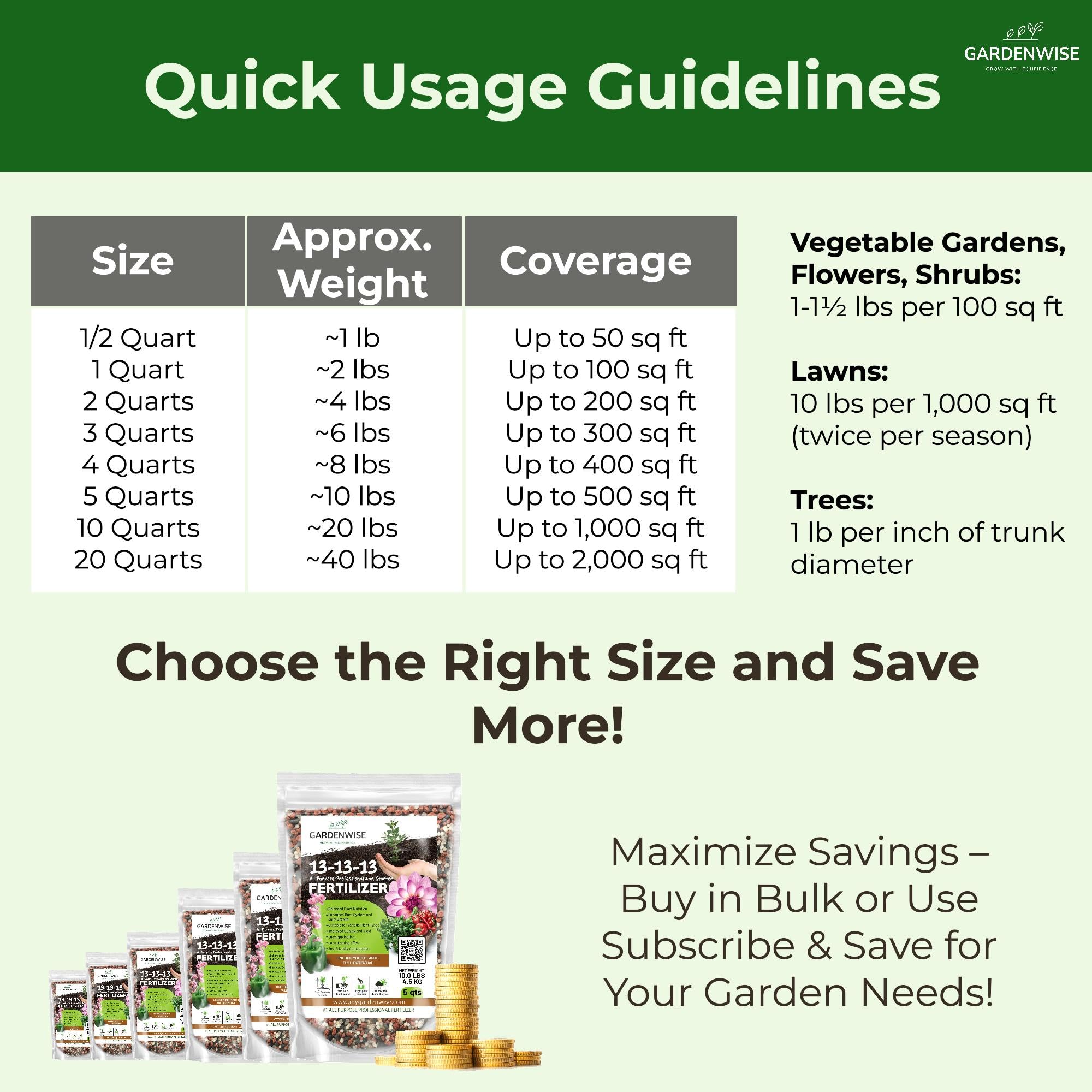 🛍 Available in Multiple Sizes: Choose the perfect size for your needs – from 1/2 quart (1 lb) to 20 quarts (40 lbs). Ideal for small gardens, large lawns, and everything in between. Flexible options for all your gardening projects!