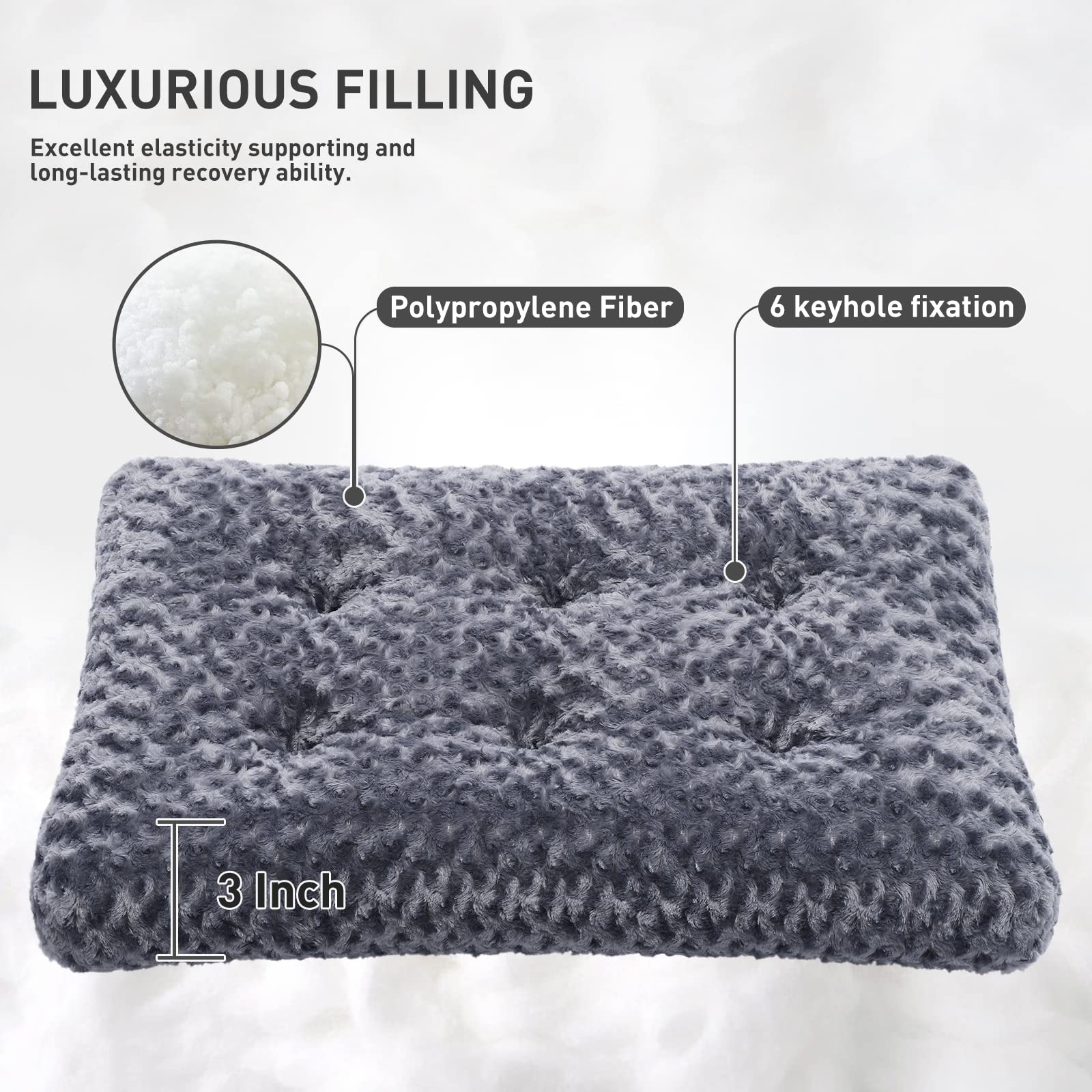 Machine Washable - Thanks to the 6 keyhole fixation and high quality filling, our kennel pad can be fully washed by hand or washing machine and can remain shape after times wash. Let your pets enjoy a breathable, clean and hygienic crate bed.