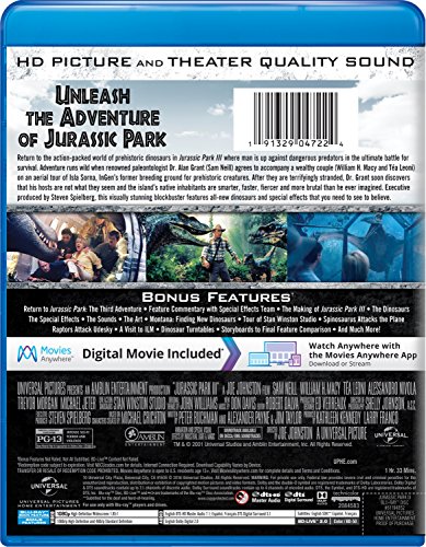 Return to the action-packed world of prehistoric dinosaurs in Jurassic Park III where man is up against dangerous predators in the ultimate battle for survival. Adventure runs wild when renowned paleontologist Dr. Alan Grant (Sam Neill) agrees to accompany a wealthy couple (William H. Macy and Téa Leoni) on an aerial tour of Isla Sorna, InGen's former breeding ground for prehistoric creatures. After they are terrifyingly stranded, Dr. Grant soon discovers that his hosts are not what they seem and the island's native inhabitants are smarter, faster, fiercer and more brutal than he ever imagined. Executive produced by Steven Spielberg, this visually stunning blockbuster features all-new dinosaurs and special effects that you need to see to believe. Bonus Content: Includes a digital copy of Jurassic Park III (Subject to expiration. Go to NBCUCodes.com for details.) Return To Jurassic Park: The Third Adventure The Making of Jurassic Park III The Dinosaurs of Jurassic Park III The Special Effects of Jurassic Park III The Industrial Light & Magic Press Reel The Sounds of Jurassic Park III The Art of Jurassic Park III Montana: Finding New Dinosaurs Tour of Stan Winston Studio Spinosaurus Attacks The Plane Raptors Attack Udesky The Lake A Visit to ILM Dinosaur Turntables Storyboards to Final Feature Comparison Production Photographs Feature Commentary with Special Effects Team Theatrical Trailer